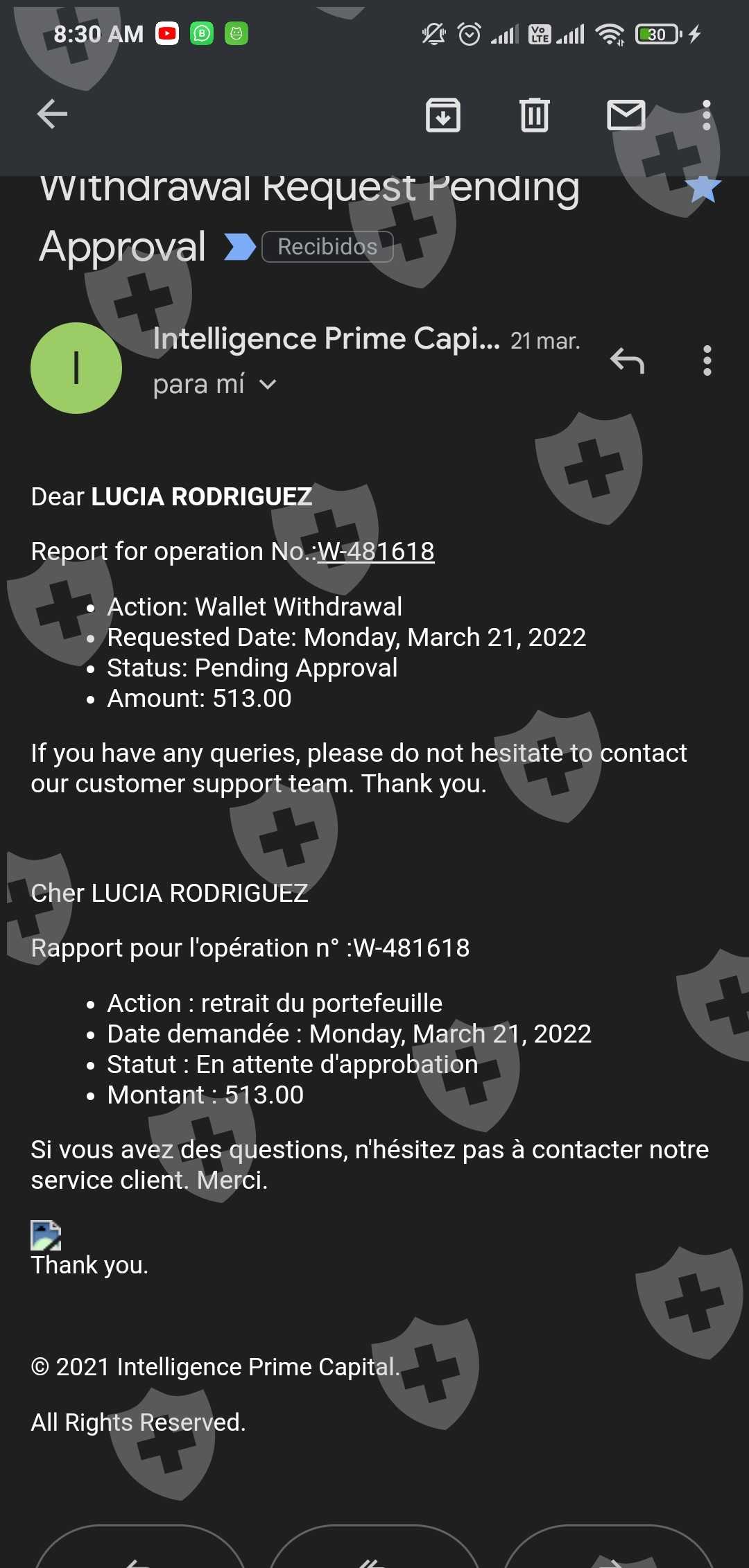 今天,3 月 28 日,我无法访问与他们创建的账户,我已经投资了 1,264 美元,但他们没有向我支付 3 月 21 日在平台上要求的 510 美元的利润。从 21 日到 25 日产生的利润还没有存款。三月和今天机器人没有工作。他们没有给出任何官方声明,无法联系支持。