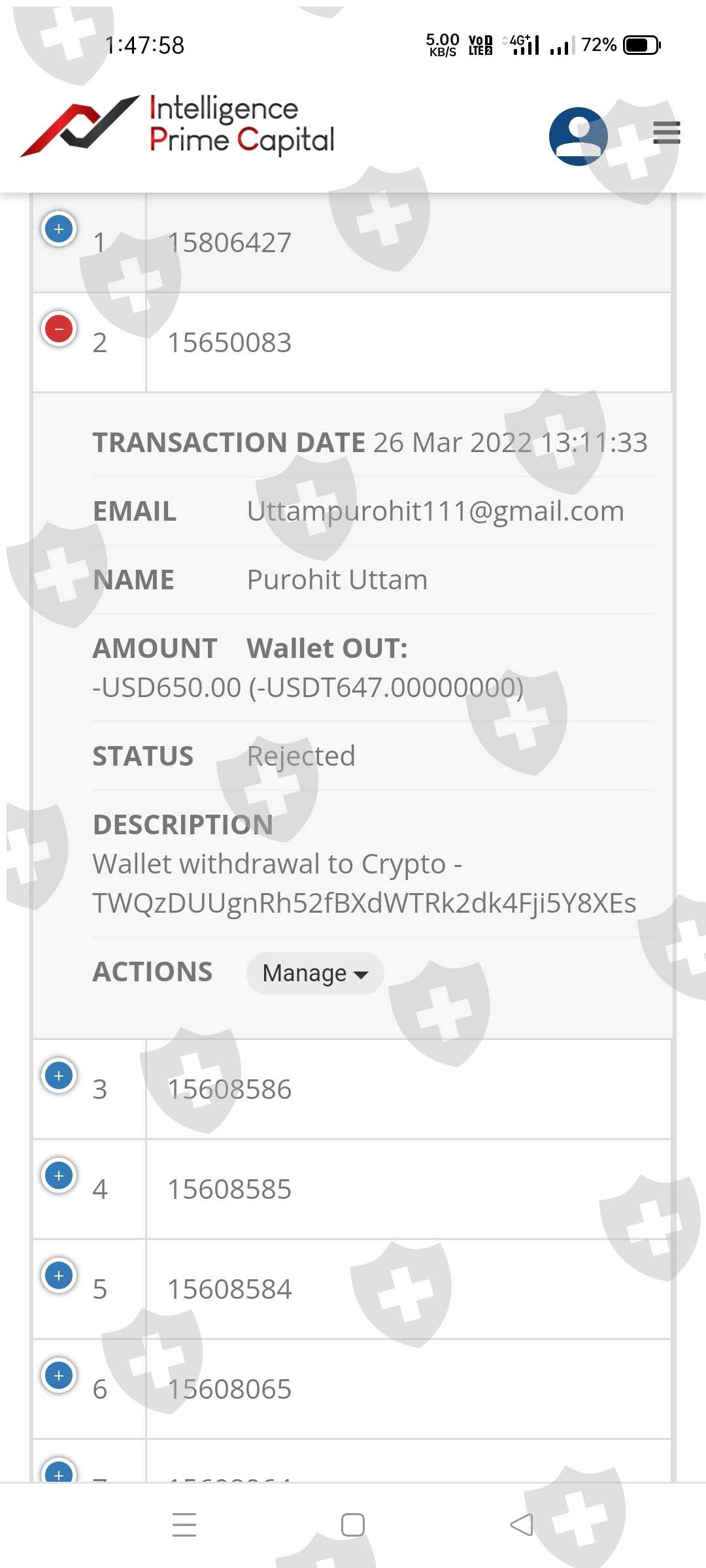 我的usdt钱包在3月26日有 650 美元。我今天在2022年3月29日提取资金时被拒绝了,现在被拒绝的金额还没有到我的usdt钱包和mt4钱包。现在我要求要么把它给到我的usdt帐号或者到我提供的区块链上的钱包ac上