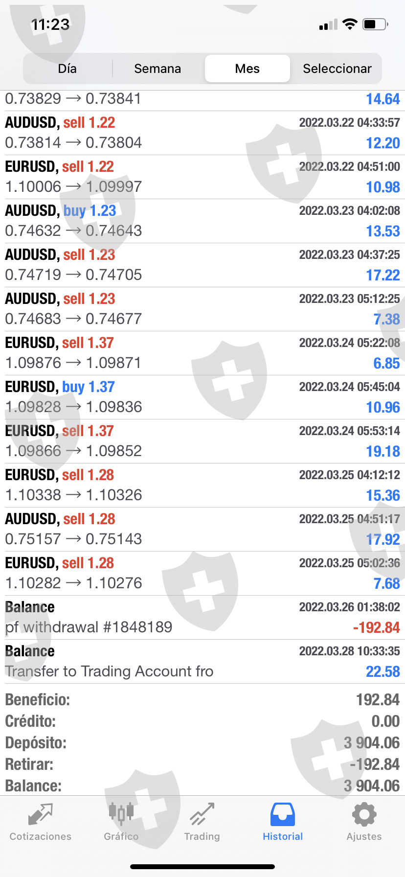 IPCAPITAL hasta el fin de semana antepasado venia cumpliendo, pero en el transcurso de la semana que acaba de pasar , nos anunció que había despedido a todo su equipo de Marketing y a algunos miembros que viven en USA como yo , les llego la noticia que en USA se iban a suspender las cuentas y que debía sacarse el dinero de la inversión antes del 27 de marzo , es decir el sábado 26 ; a mi no me llego ninguna noticia más sinembargo procedí a tomar esa acción de sacar el dinero , pero la plataforma no me lo permitió; esto lo hice el sábado en la noche , ayer domingo también lo intenté y no fue posible y hoy amanecí viendo que ya la página de los miembros de IPCAPITAL está caída. Les envío las fotos del capital que tenia al principio de la semana comprendida entre el 14 y 18 de marzo y la semana entre el 21 y 25 de marzo . También les envío foto del Metatrader 4 de las utilidades de la semana pasada.