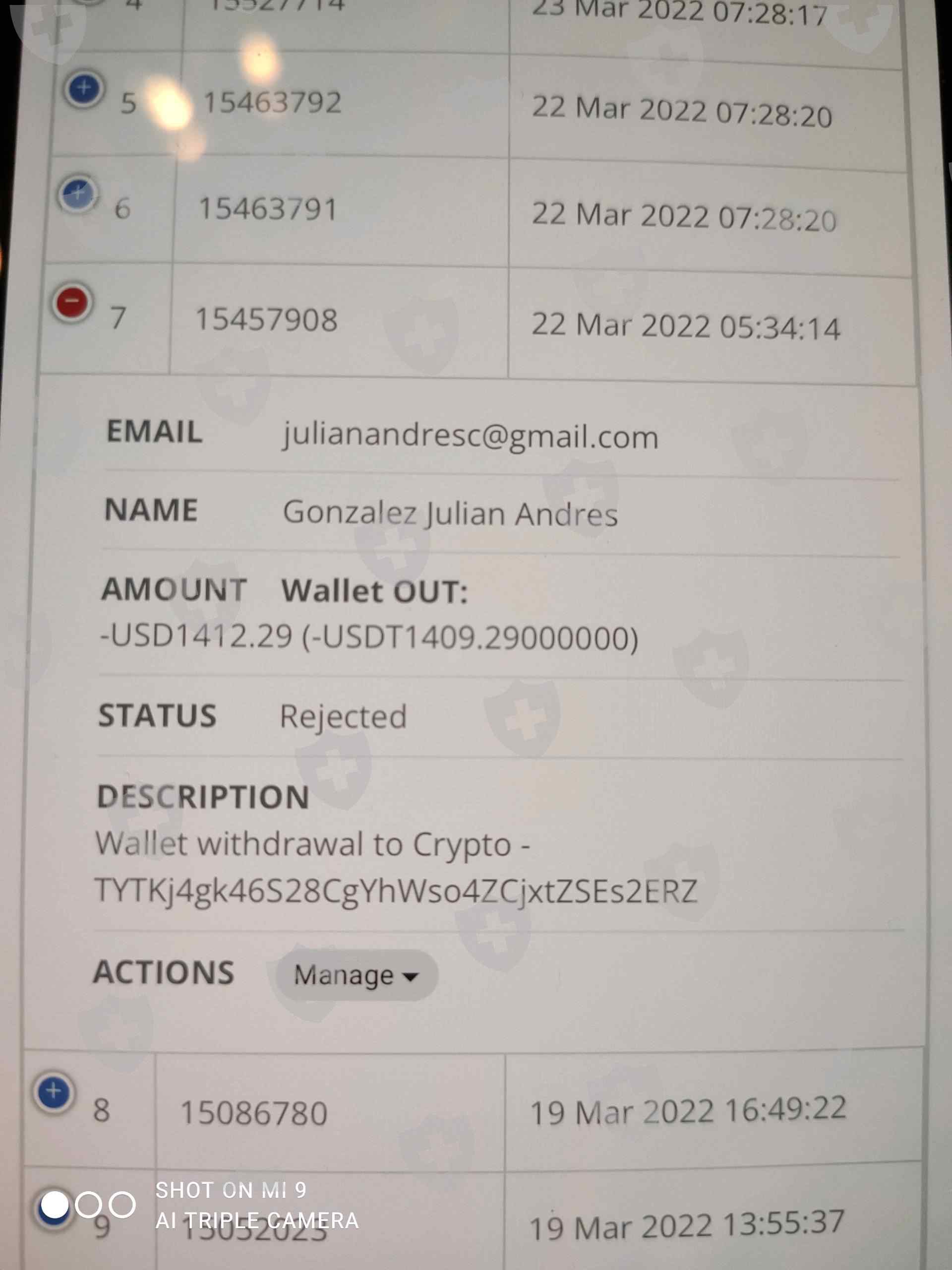 1409 于 2022 年 3 月 22 日申请提款,但被拒绝。订单号 15457908。公司的支持没有回答任何关于它的问题