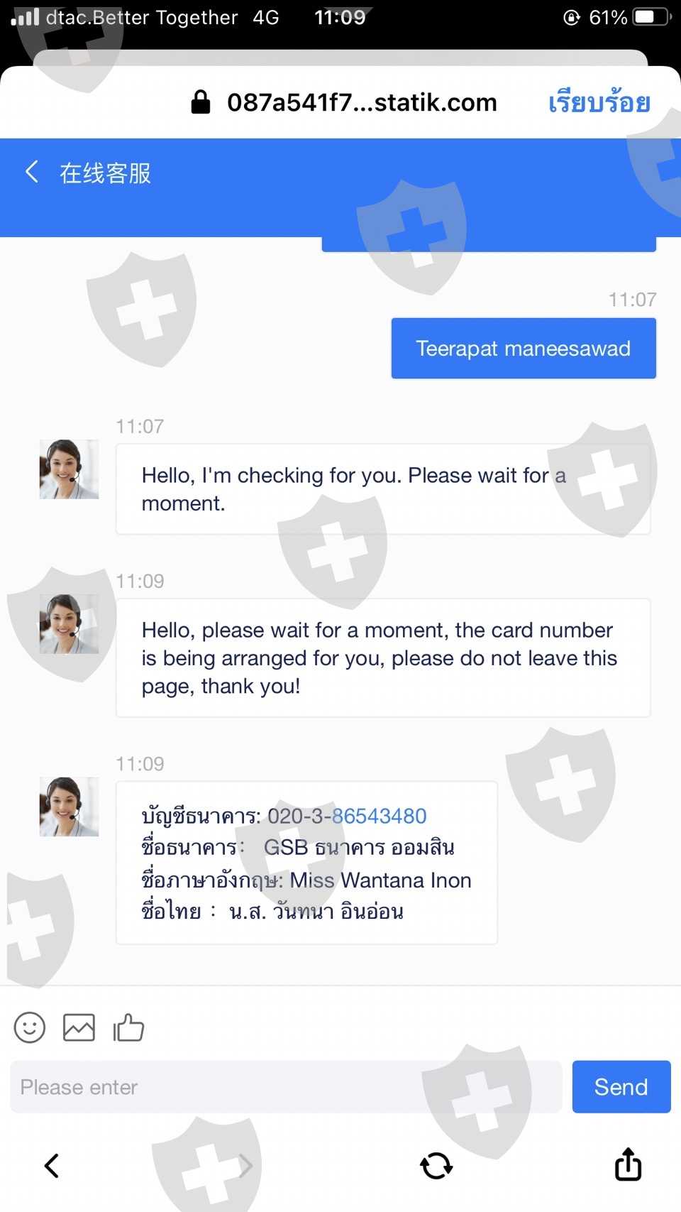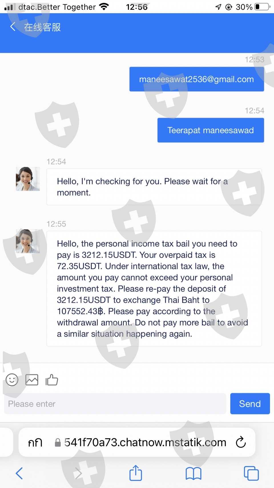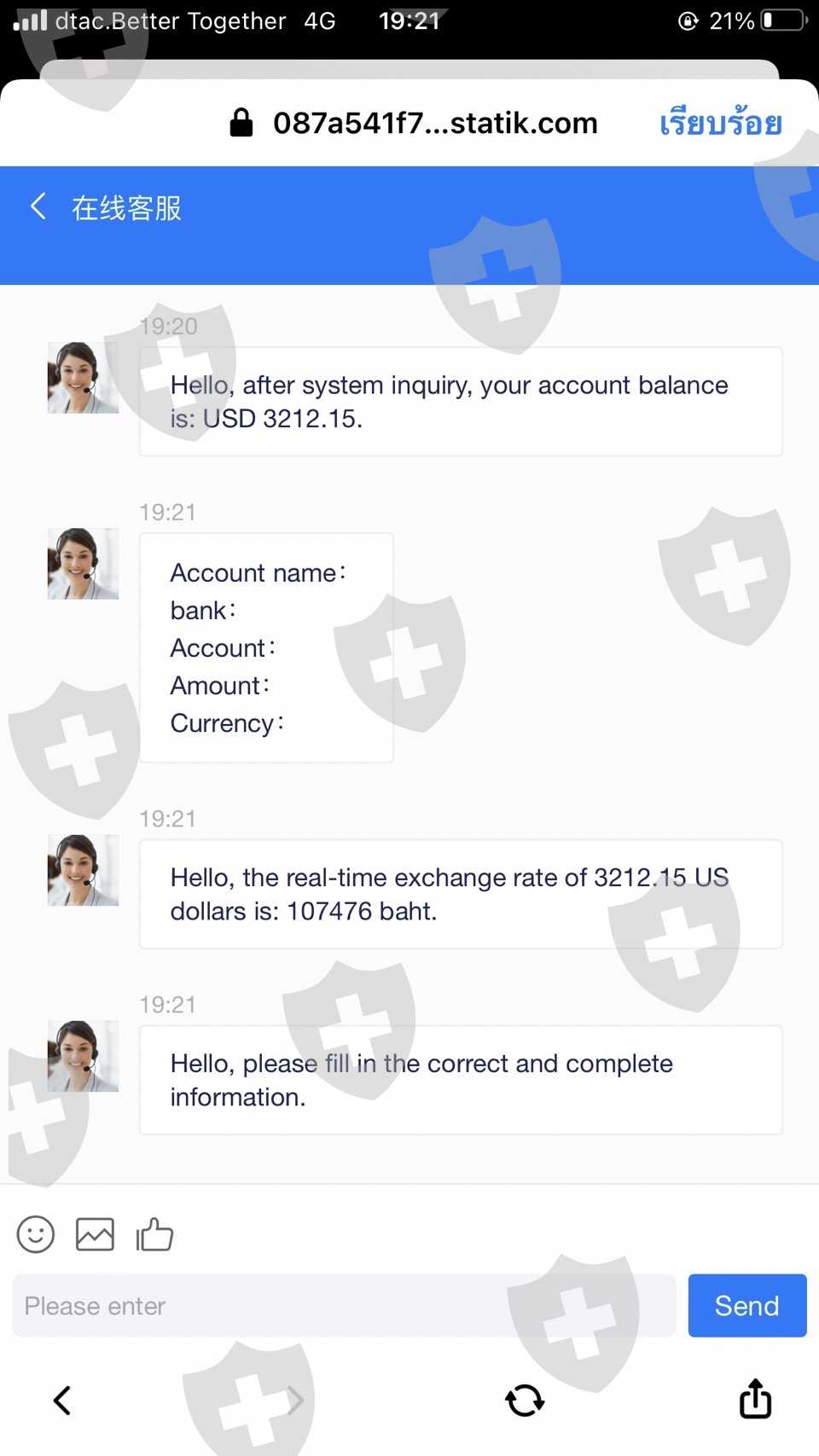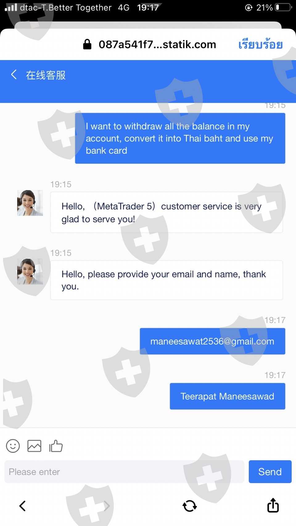 有人建议和这个经纪人一起玩。第一次转账,10万泰铢,已经交易他一拿到手镯,就想把它收回来。但不能撤回它允许您将资金转入额外的约 110000 泰铢以提取。