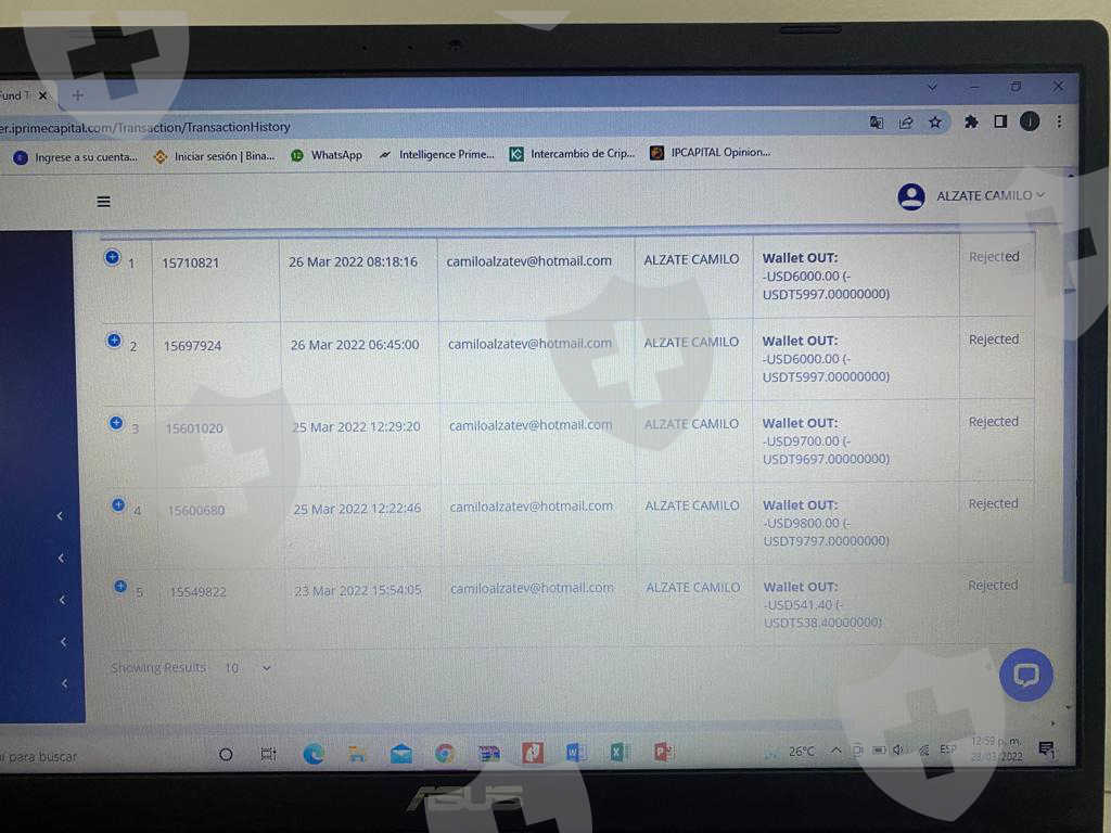 desde la semana pasada se hicieron varios retiros uno el martes luego el viernes dos y él sábado otros dos por un total de 32.041,40 dólares pero todos fueron rechazados y el dinero no fue devuelto a la Wallet solo desapareció