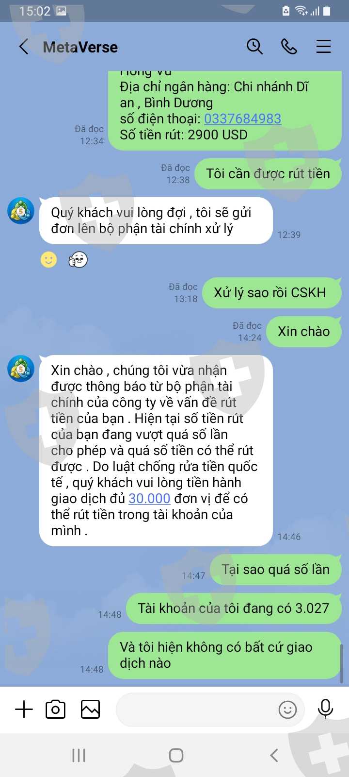 tôi muốn rút về 3000$ nhưng CSKH từ chối và không trả lời.Sau đó lại yêu cầu tôi nạp thêm 30.000 mới cho rút toàn bộ về.Xin được hỗ trợ bồi thường