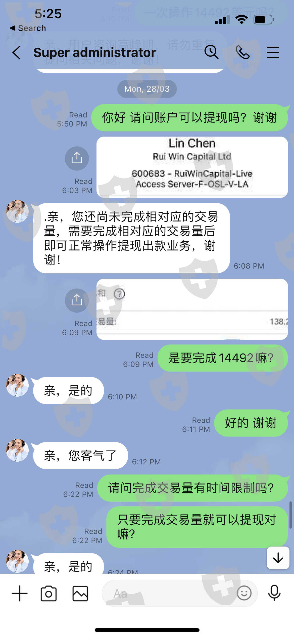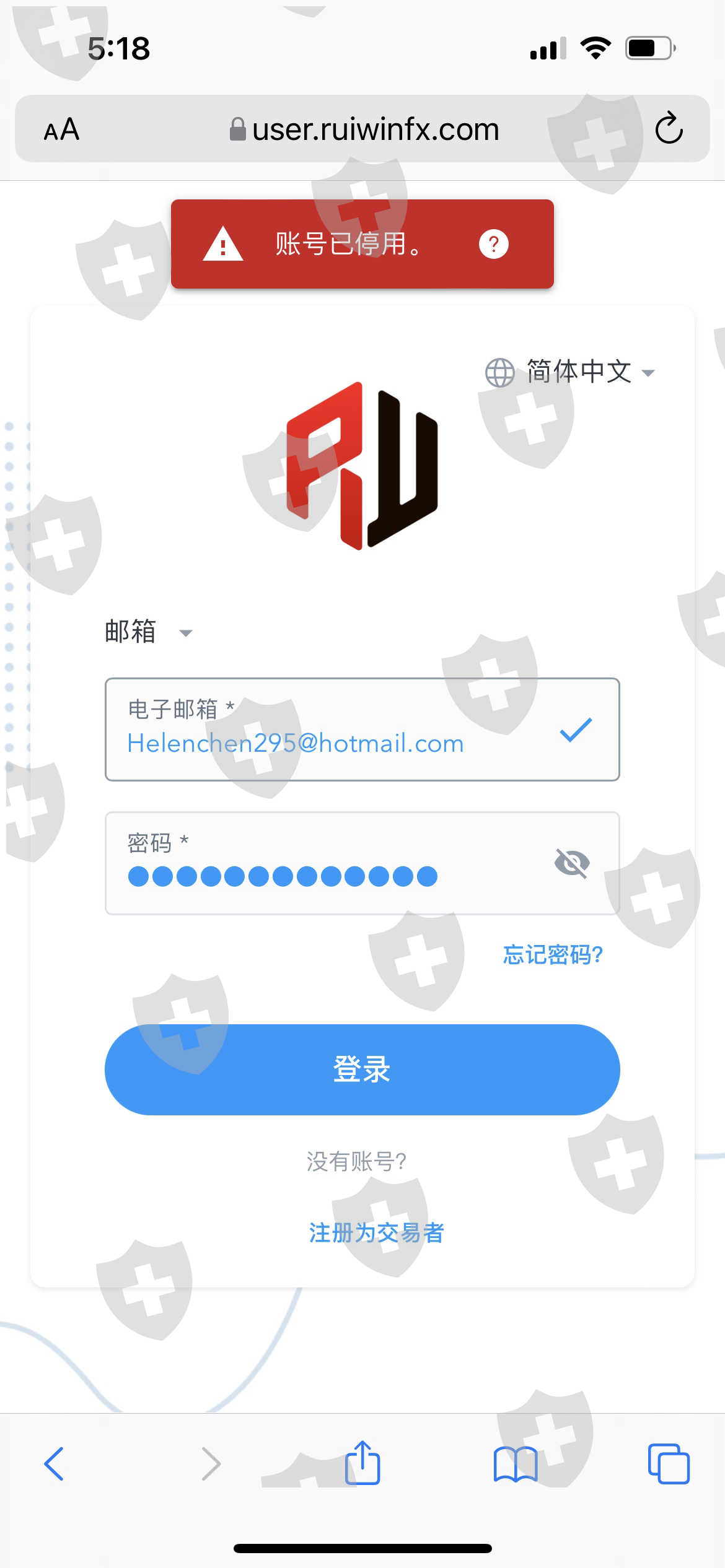 请求出金的情况下 被告知需要等量的交易额度.在提高交易量的过程中 账户在MT5被封锁 平台网站也登入不进去 尝试联系客服几天无人回应 请各位小伙伴不要参与Rui win capital 外汇平台的任何交易