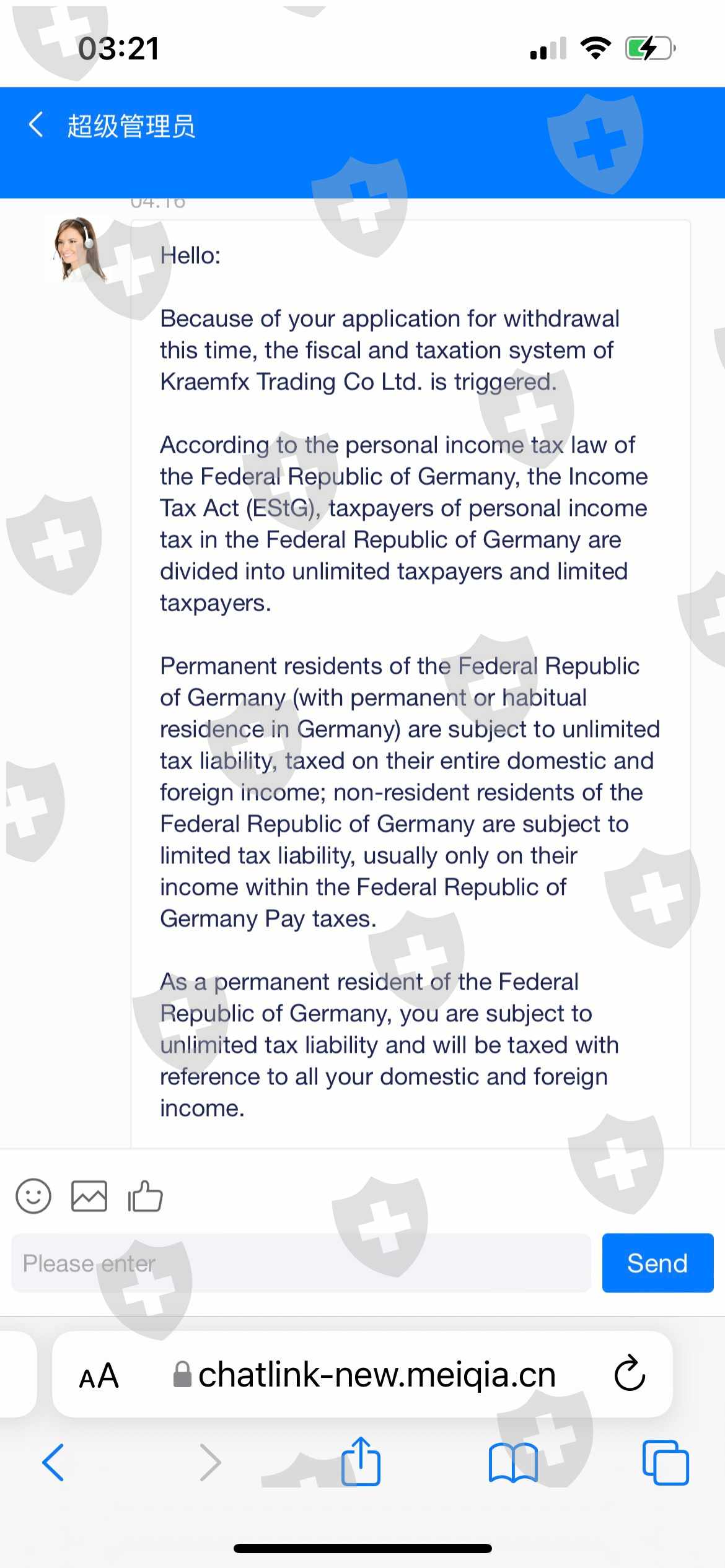 The story starts with signing up for various promotions and saying that there will be a huge percentage of the broker's compensation. Which if deposit within the specified period will receive a reward The more you fill, the more rewards you get. And when I traded so much that the amount was a little over $100,000. I also wanted to withdraw it, but it turned out that I couldn't. The broker said that since I'm a German citizen and didn't apply for taxes on it in the first place, I had to pay a fine of 35% of the total deposit. I transferred to it until the end. Then when it's complete, I will withdraw the money, it says after review by relevant departments, it has been found that my account has many illegal operations. Reject my withdrawal request this time, and return the funds to my trading account. It said that was money laundering. It will allow me to transfer the insurance fee in order to restore the account back to normal and not being caught in money laundering accounts in the amount of 200% of the total balance. The other account that is the account of that Thai girl who deceived me to invest money with this broker. Cause I trusted this girl who deceived me I transferred another around up to 9000$ to the broker, but it still didn't meet the required amount. The girl who deceived me said that she would transfer the rest to help again and complete this mission. But since 2days ago the woman never contacted me again. I know now that I've really been deceived. Totaly amount what I‘ve invested my port is around 36000 $. I don‘t know any more how can I do that, to get my money back.