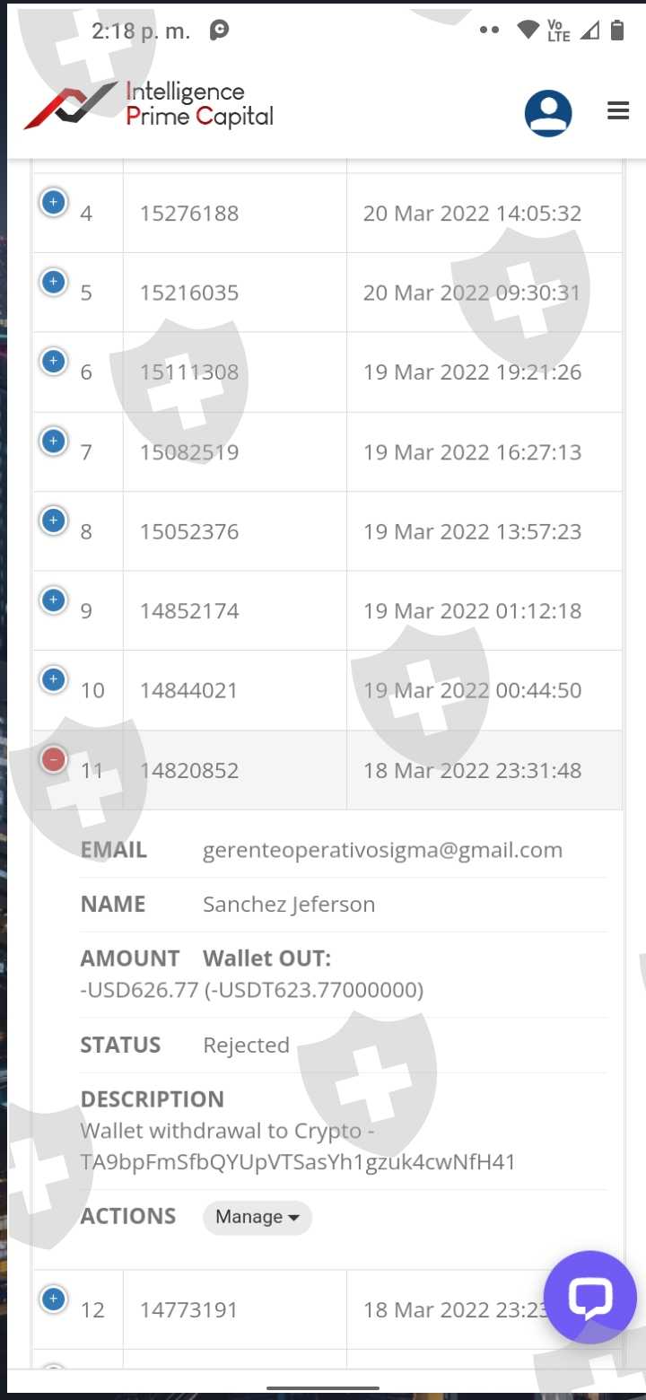 Adjunto foto de los reportes del backoffice del broker donde aparece rechazado y desde hace como 2 fin de semana se realizó el retiro y nada de nada que llegan, tampoco el chat de soporte ya no está.