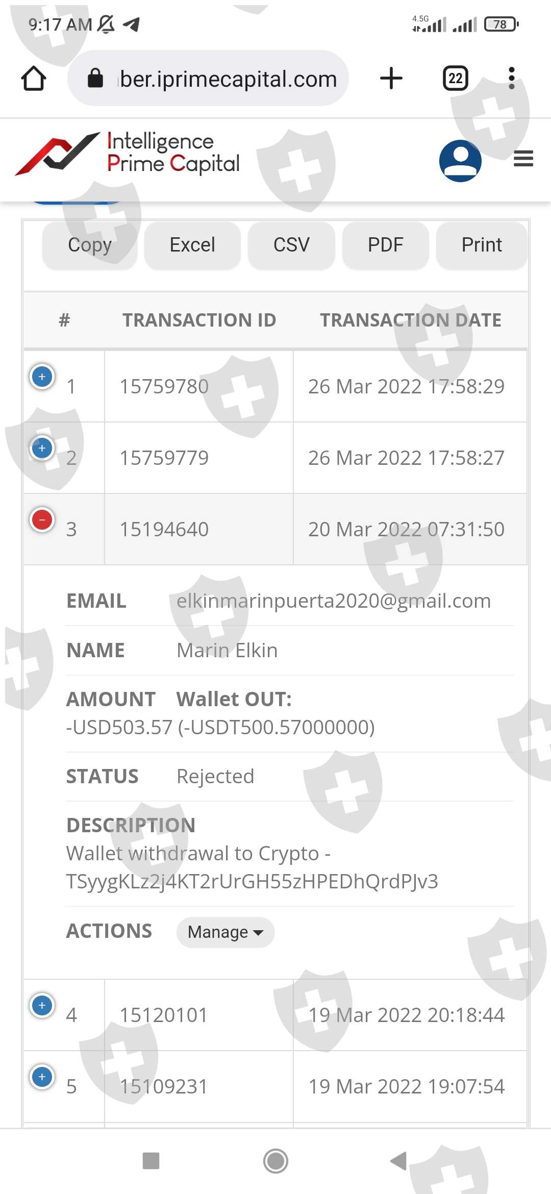 20 de marzo de 2022 realicé un retiro por 503 USD y me lo rechazaron.