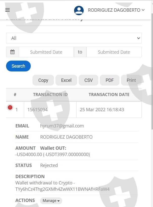 withdrawals rejected