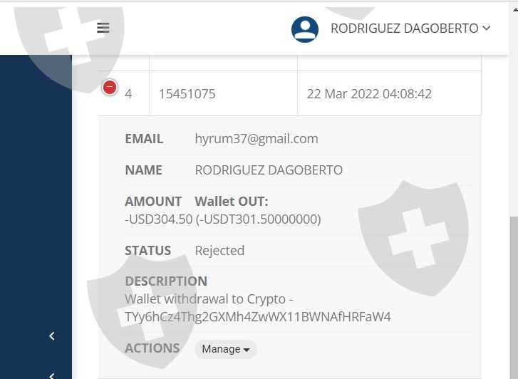 我的账户 ... hyrum37@gmail.com 我的mt4账户: 4269178 我上周进行了两次提款,但都被拒绝了。我需要你的帮助来提款。--请转移到我的mt4或我的钱包。 #1 交易编号:15451075 2022 年 3 月 22 日 $304.50 #2 交易编号:15615094 2022 年 3 月 25 日 $4000