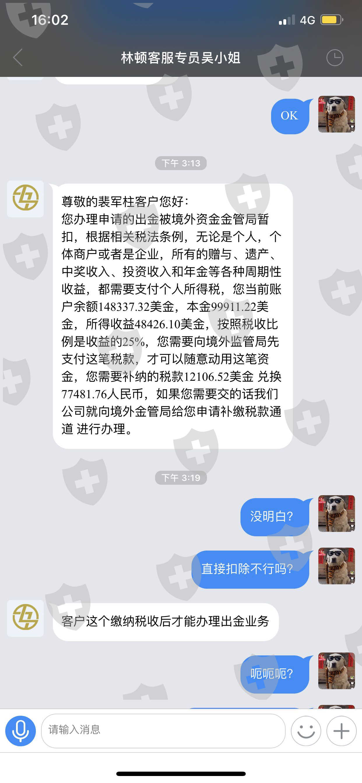 我办理出金,之前是2小时就能到账,现在是要交利润部分的25%的个人所得税才能办理我交完税,现在说大额美金兑换人民币需要10个工作日才能到账,如果要快速办理兑换业务,要充值4000美金才能办理,迟迟不办理出金业务