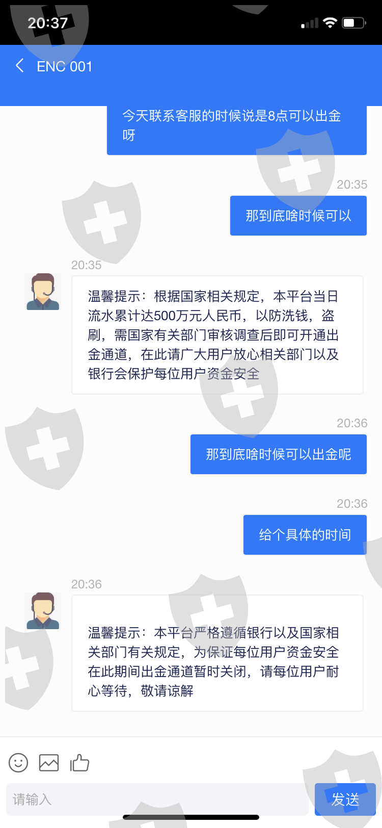无法出金。一会说是闭市,一会又说晚上8点出金。后面又说受监管部门监控无法出金