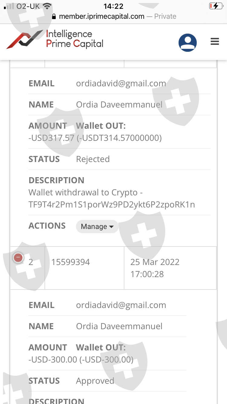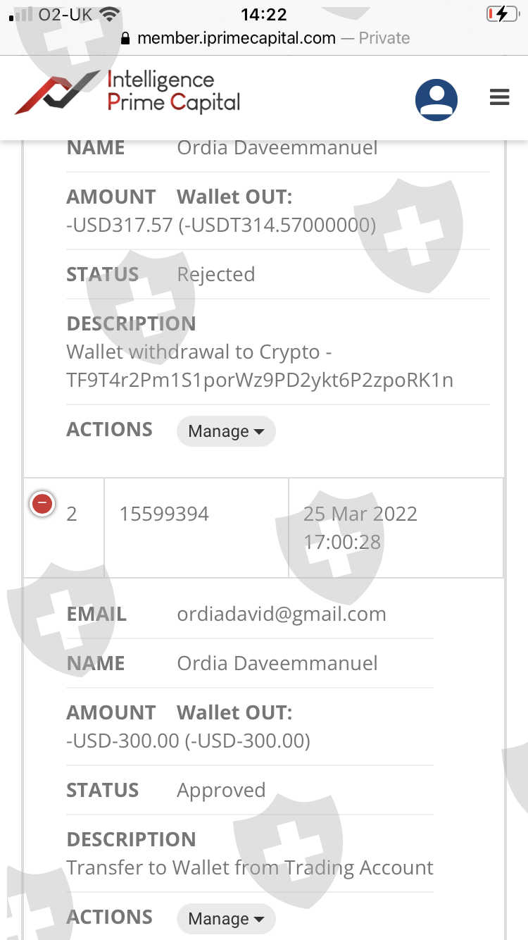 on March 19 Ipc claimed it’s system was being updated so withdrawal request were unable to take place , on. March 25th i made a withdrawal as shown on the screenshot the money left the account and the withdrawal got rejected however my funds have not been returned , I am unable to contact ipc regarding this problem today is April 5th and I can’t get my money or heard anything from. ipc , they also gave fake. email. address which I have sent emailed on multiple. occasions