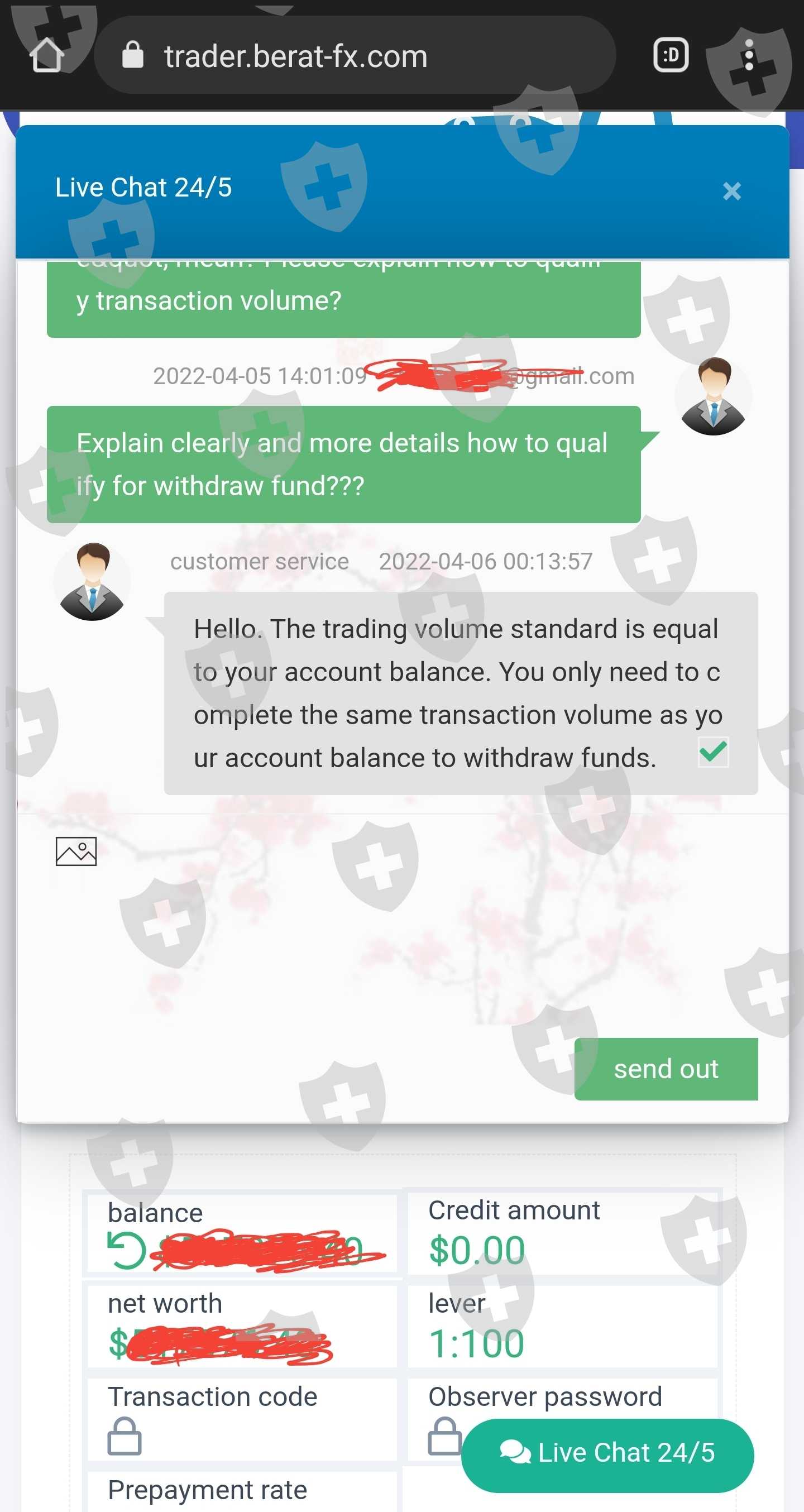Berat limited did not allow me to withdraw fund at all. They forced me to trade. Here their answerinf script to me:" The trading volume standard is equal to your account balance. You only need to complete the same transaction volume as your account balance to withdraw funds". The question why I have to trade if my risk/reward ratio is not good. I only trade when I see I can make profit. I can decide when I trade or not because it is my money. BERAT LIMITED MUST FIX AND RESOLVE MY ISSUE AND ALLOW ME WITHDRAW MY MONEY.