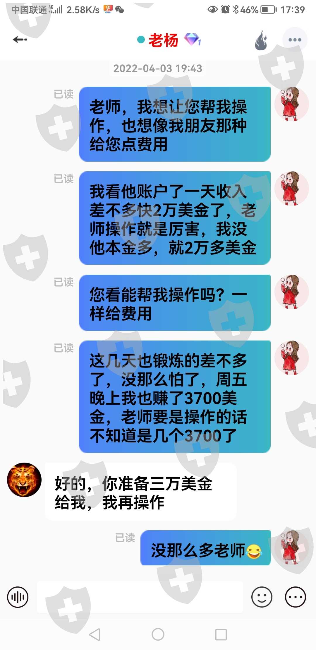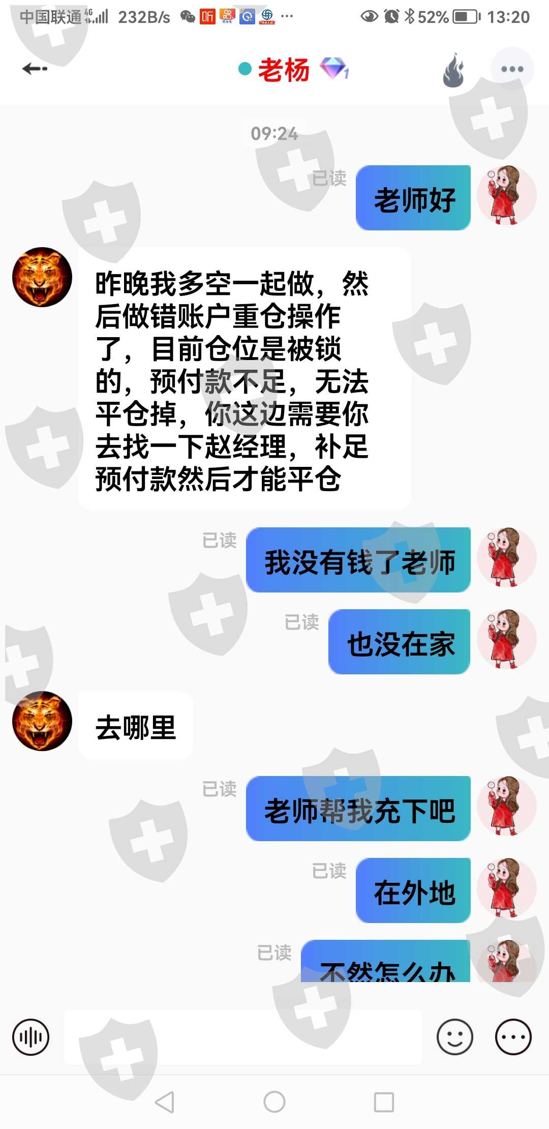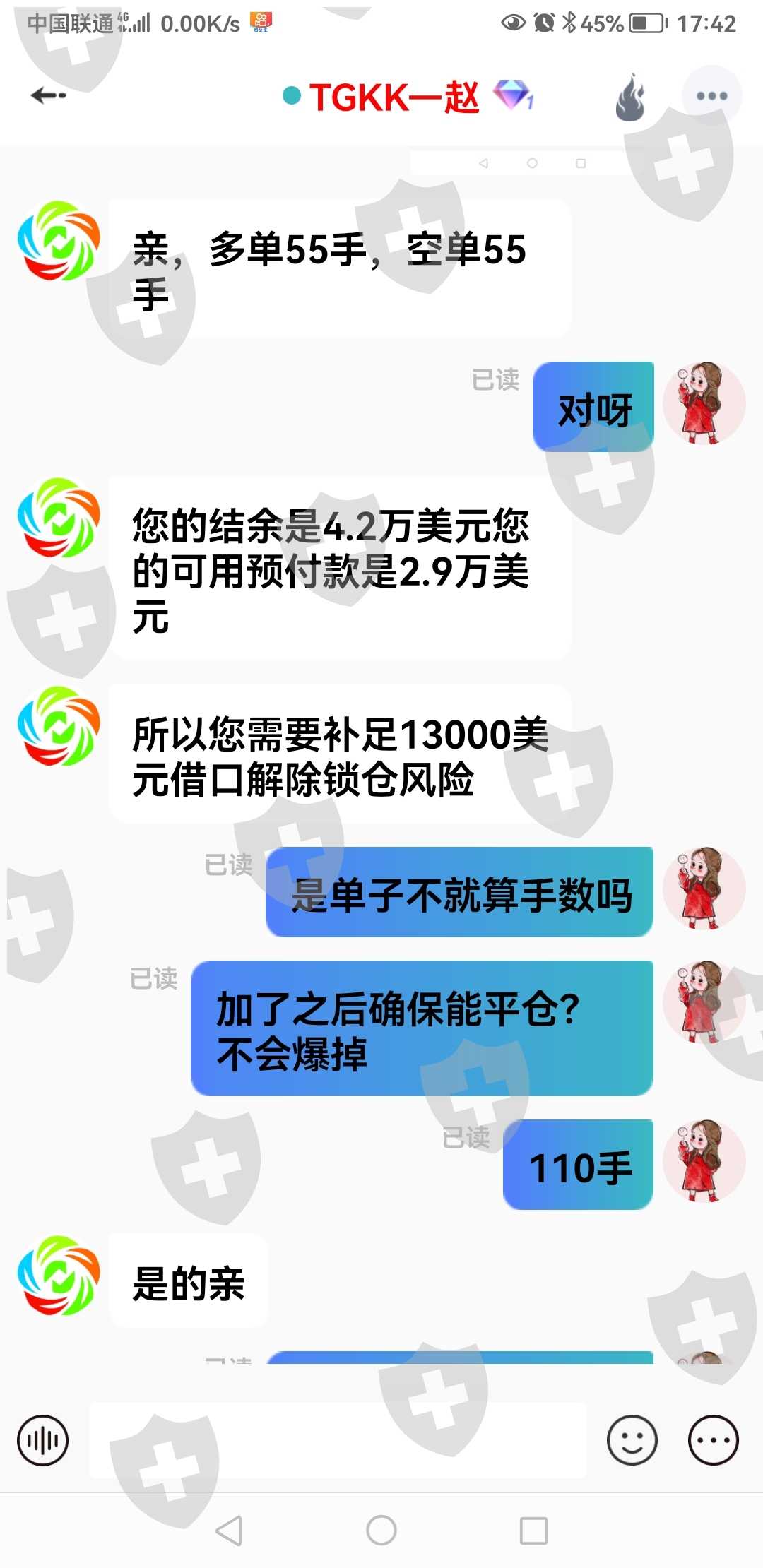 我被TGKK平台被骗,他们用的是思语软件,不止一个人负责诱导,一个负责控盘锁仓,一个负责充值,当你被套找到群主老杨时,他会有方法解套,让你盈利,接着你很相信他,就把账号给他我让他解套,白天让你盈利,后半夜2点到3点就给你下单55手空55手多,搞到账户锁仓,让你无法平仓,然后去找赵经理加金,加多少都是他说的算,没有一定规则,就算加进去也不能解仓,很明显的套路,11秒时间下单40手,这些人太狠了,就几天时间账户20万本金,全部锁住,一天不到搞锁仓,交易不得,资金也拿不出来