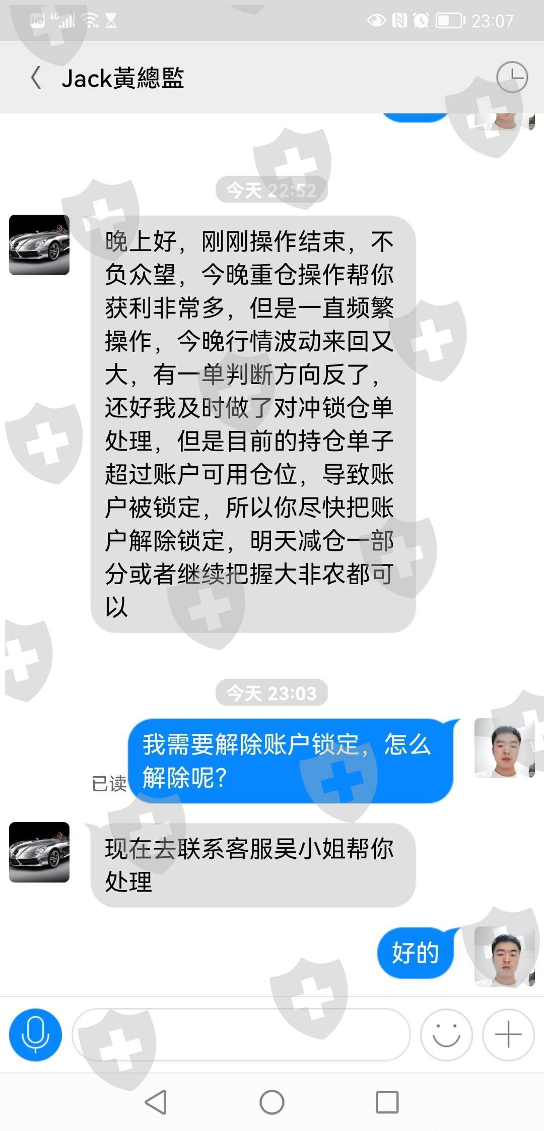 在该平台操作伦敦金,从我注册账号后前后多次入金,平台拿我的账户多次频繁操作,最后一次平台拿我账户大额下单导致锁仓。后平台提示我让我继续入金才能解仓提现。我实在没钱入金,多次恳求平台退还我本金无果。