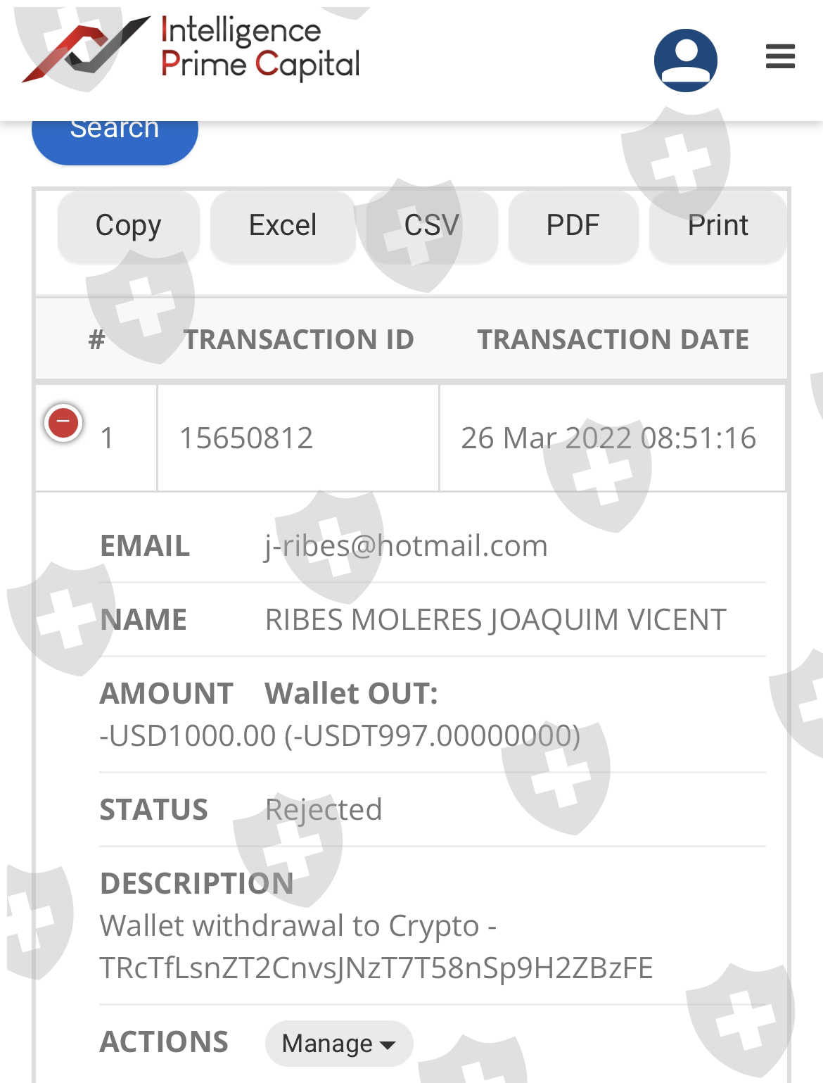 El sábado 26/03/22 hice un retiro de 1000 usdt de mi wallet de ipc a mi cuenta de Binance y se me denegó sin motivo, pero además no me han devuelto ese importe a mi billetera de ipc, ha desaparecido esa cantidad, no consta aparece en ningún lado.