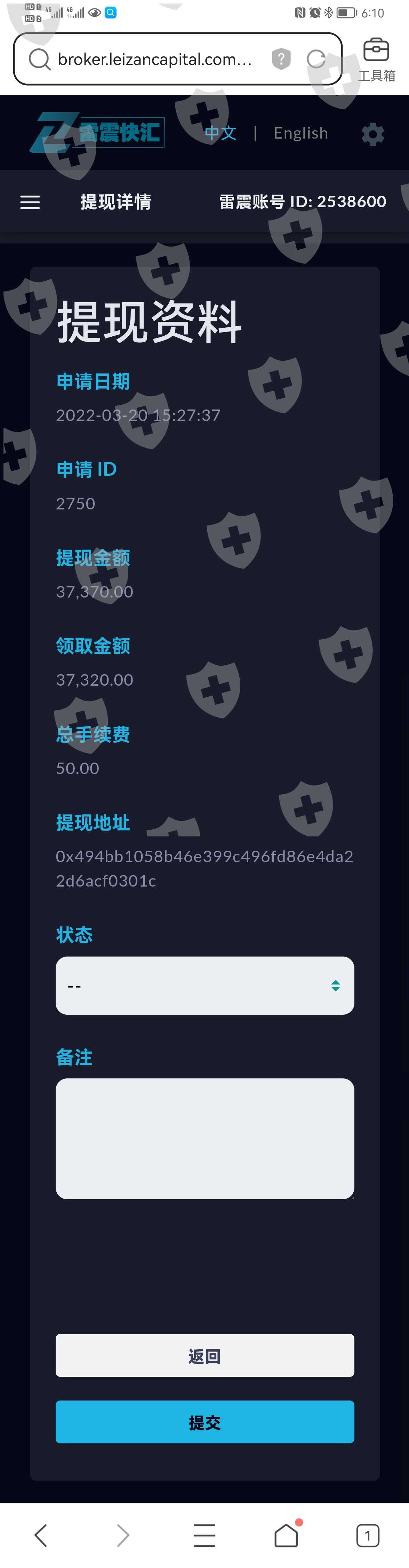 无法提款,资金未汇出。
