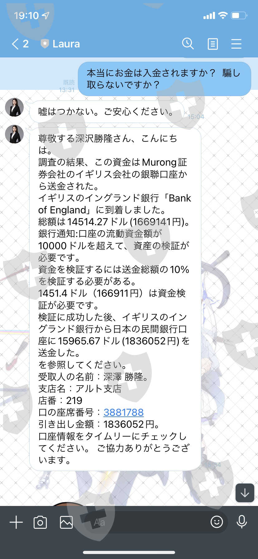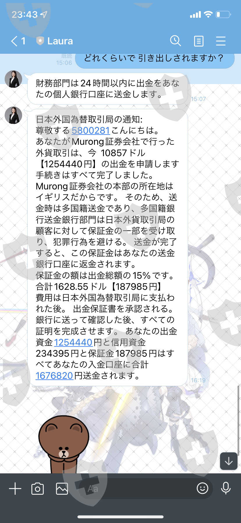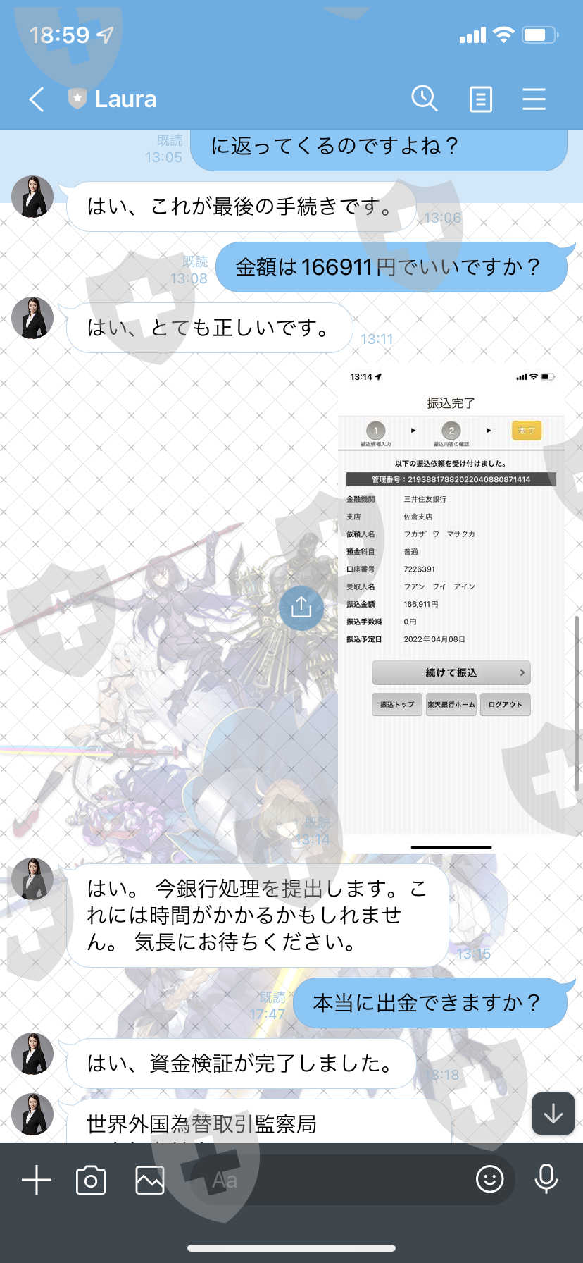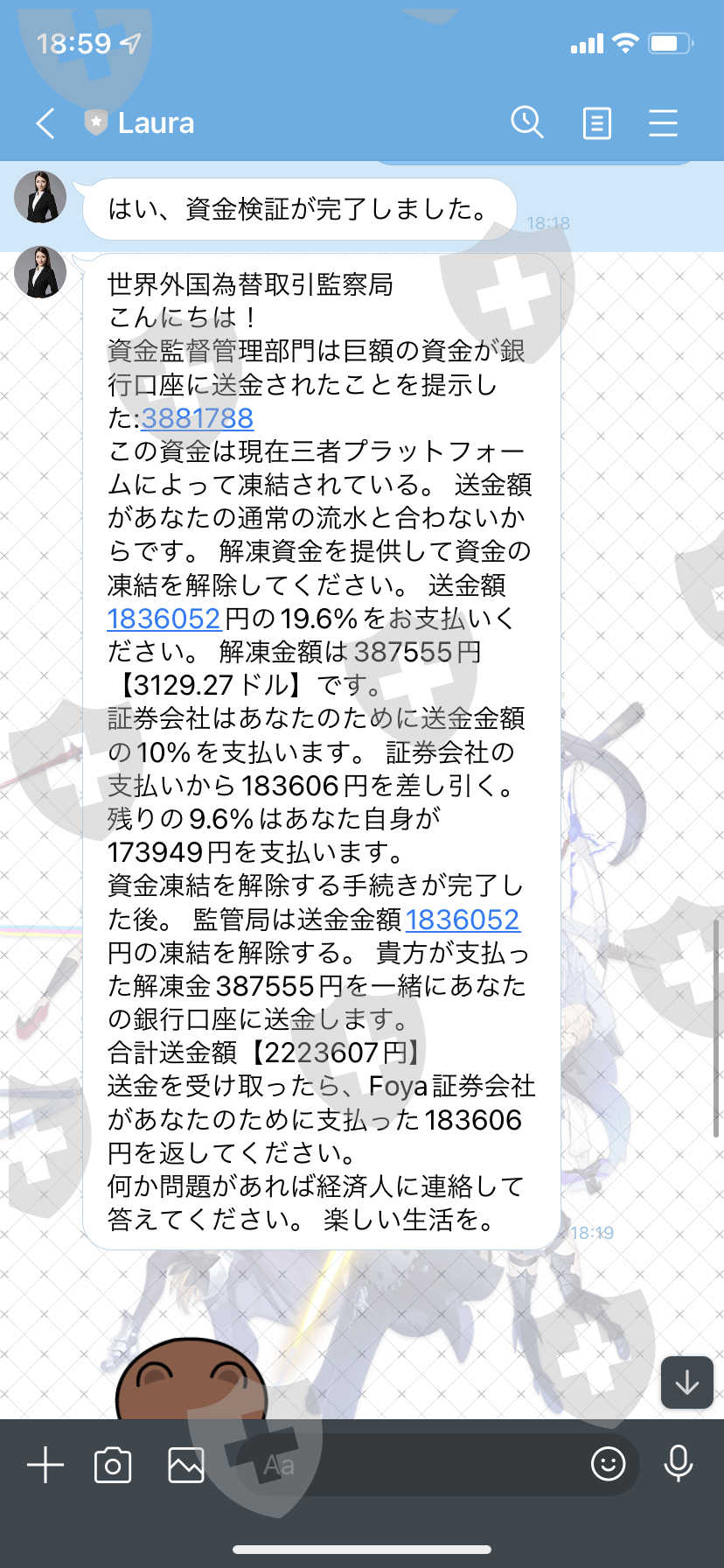我支付了 185,006 日元的分析师费、234,396 日元的保证金分数费、187,985 日元的押金和 166,911 日元的资金验证费,但这次我被收取了 173,949 日元的帐户冻结解除费。这似乎不再是一个骗局。请退钱