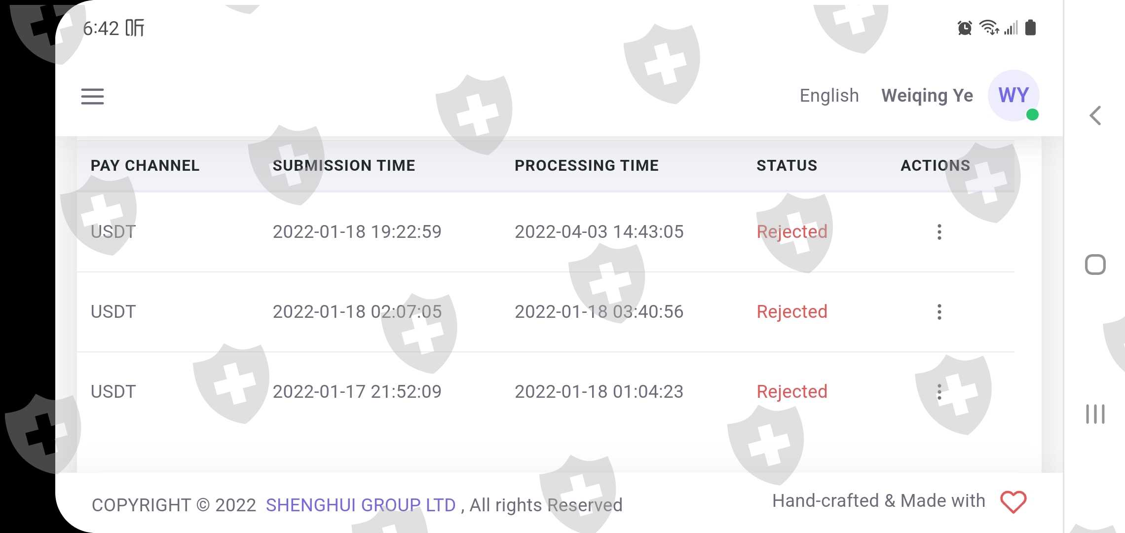 From Jan 18th, 2022, requesting to money out for only USD7500, but Shenghui Group Denied to do so until now, 4 months passed already, still pending.