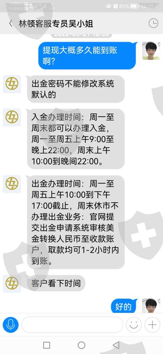 林顿金融黑平台,通过这家玩儿黄金涨跌的朋友们,千万提高警惕了,入金干脆,出金是一拖再拖的,开始说两小时内到账,后来又说3到7个工作日到账了,朋友都注意点儿吧