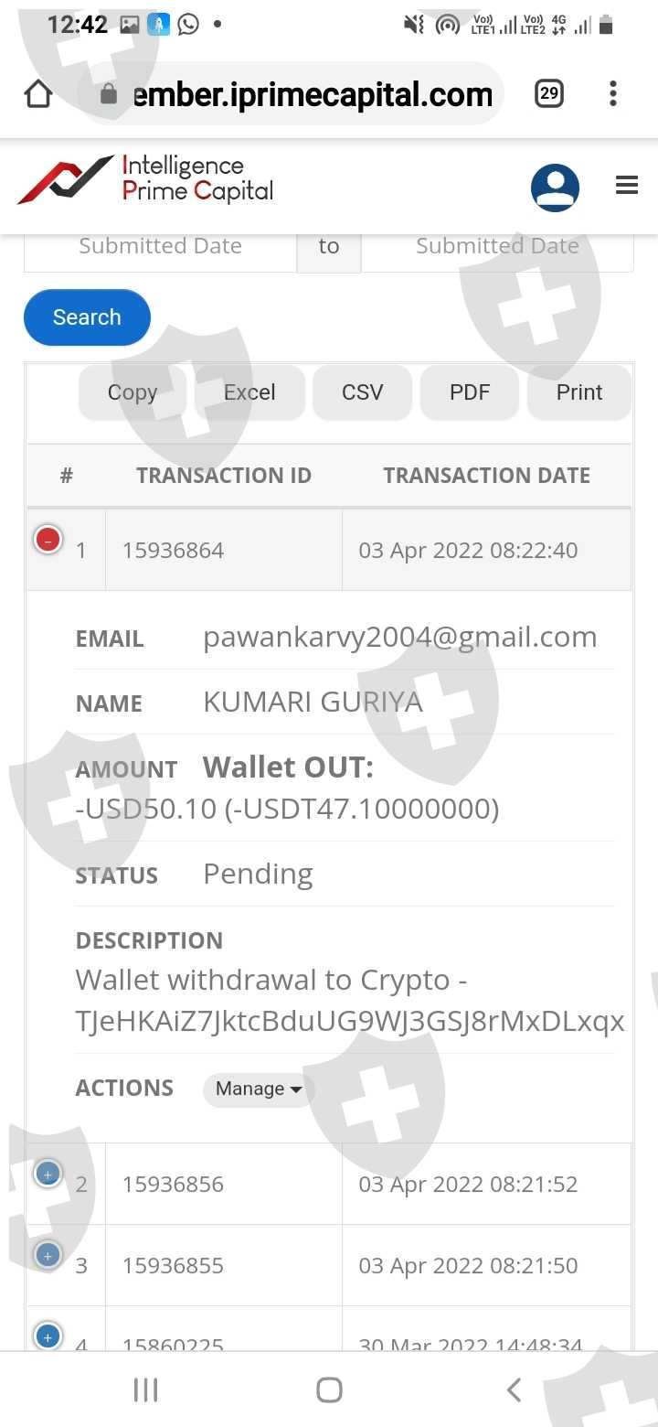 Request sir to give me new update of iprimecapital.com that this deposit amount and profit amount withdrawal has been stopped