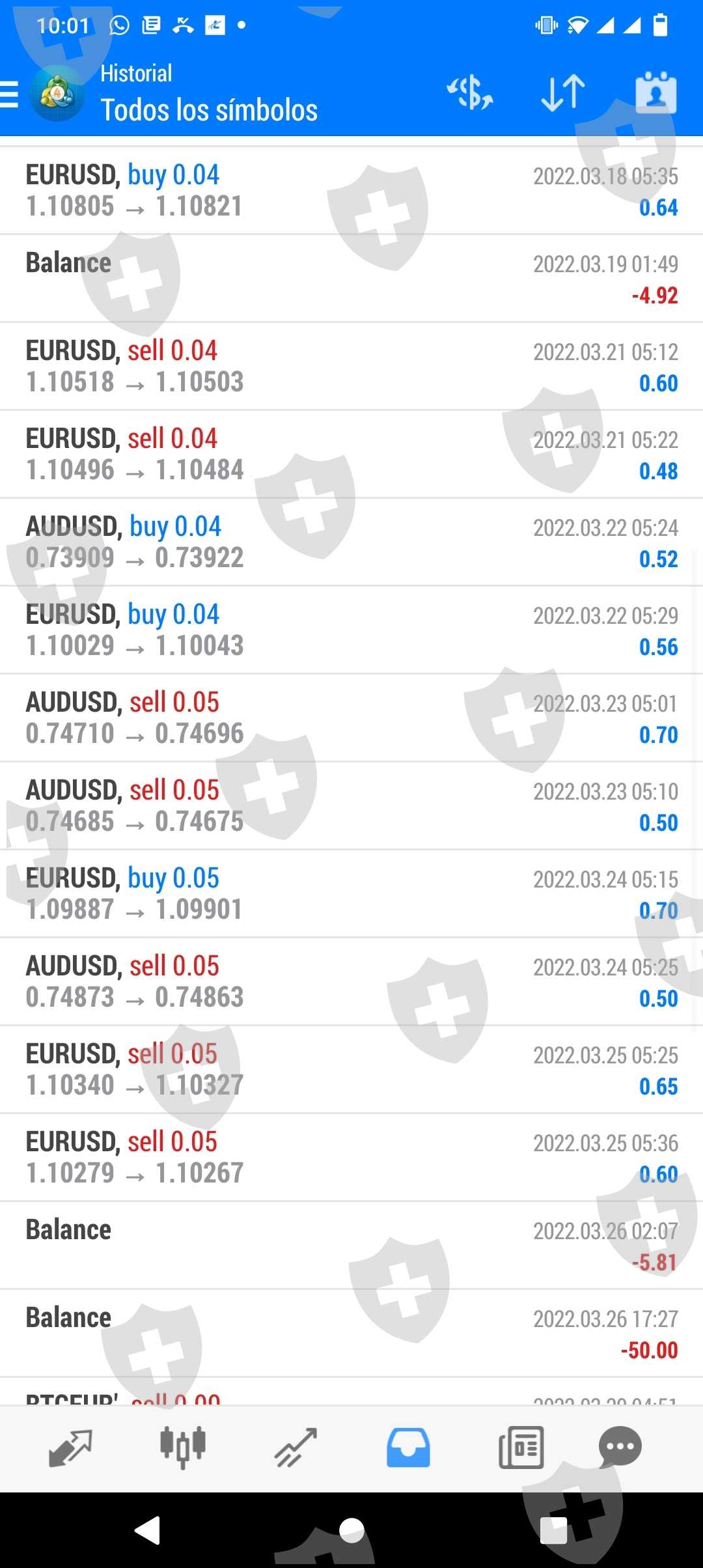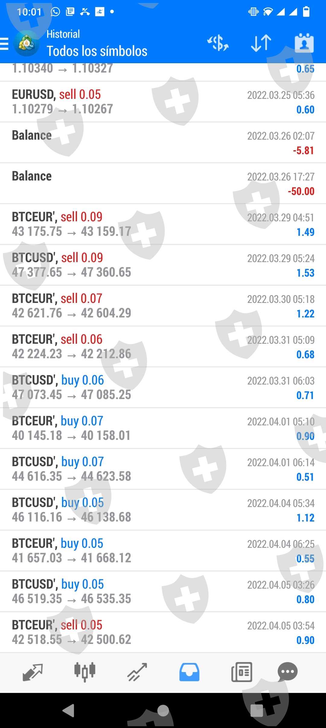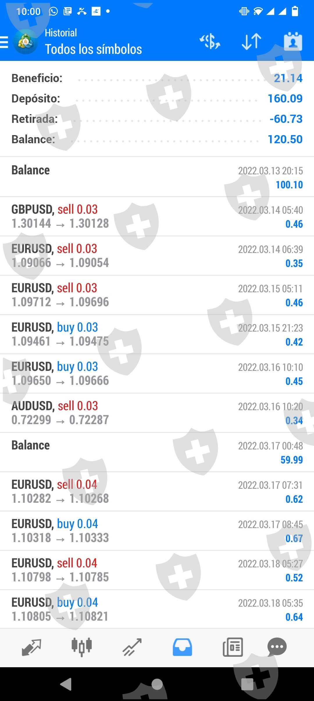 Total Saldo Disponible en MT4 ID 4422658: $1000.10 al 02/04/2022