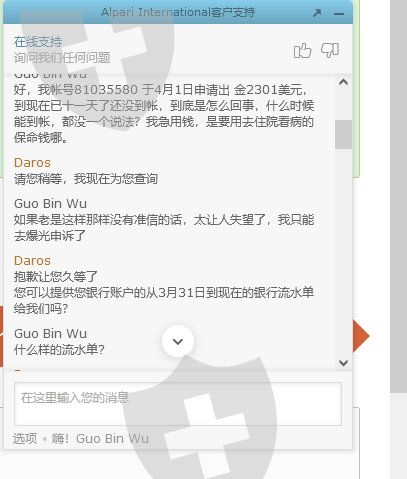 我帐户81035580帐户2022.4.1日 申请出金2301美元,现在十几天了还没有到帐,客服老说是在等支付商调查回复,这是要去医院住院的救命钱,请给我作主,尽快处理到帐,非常非常感谢
