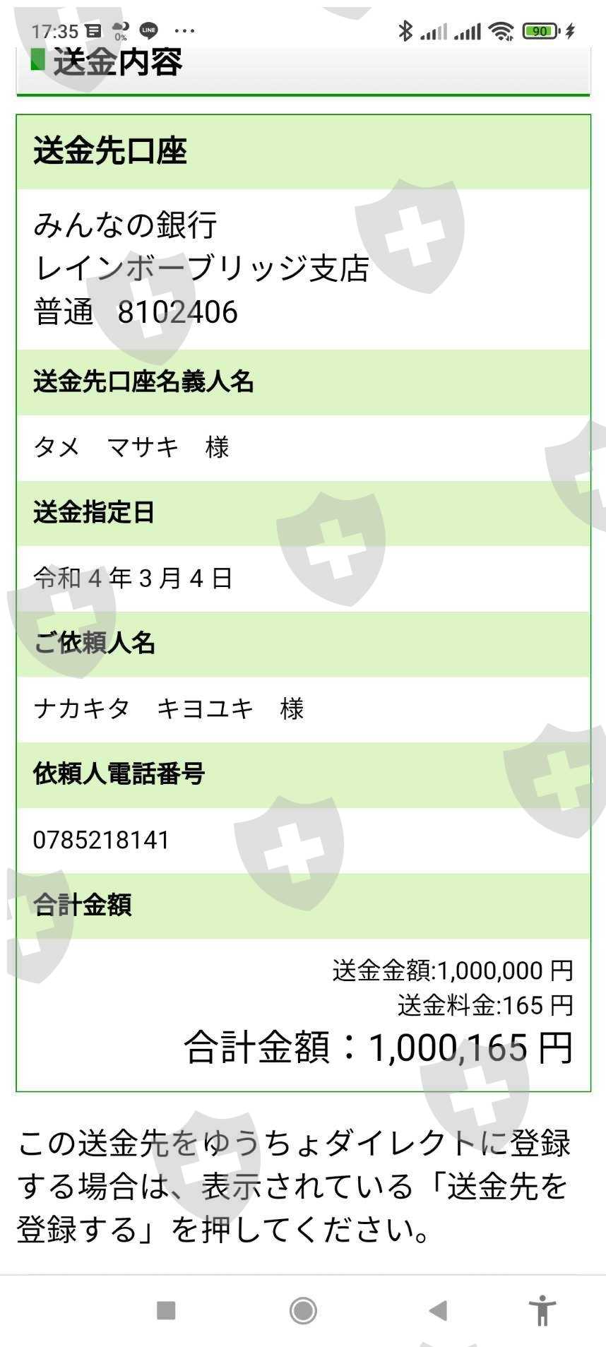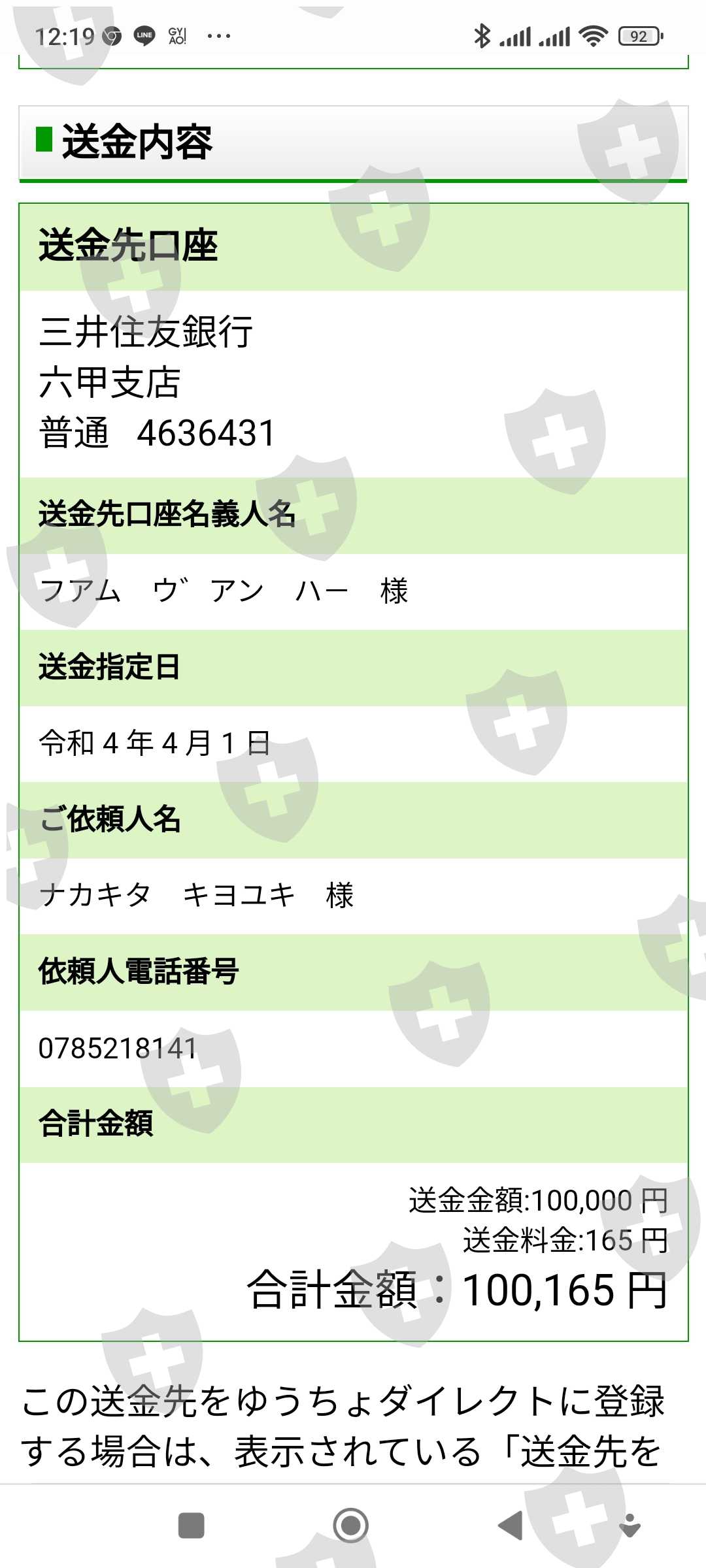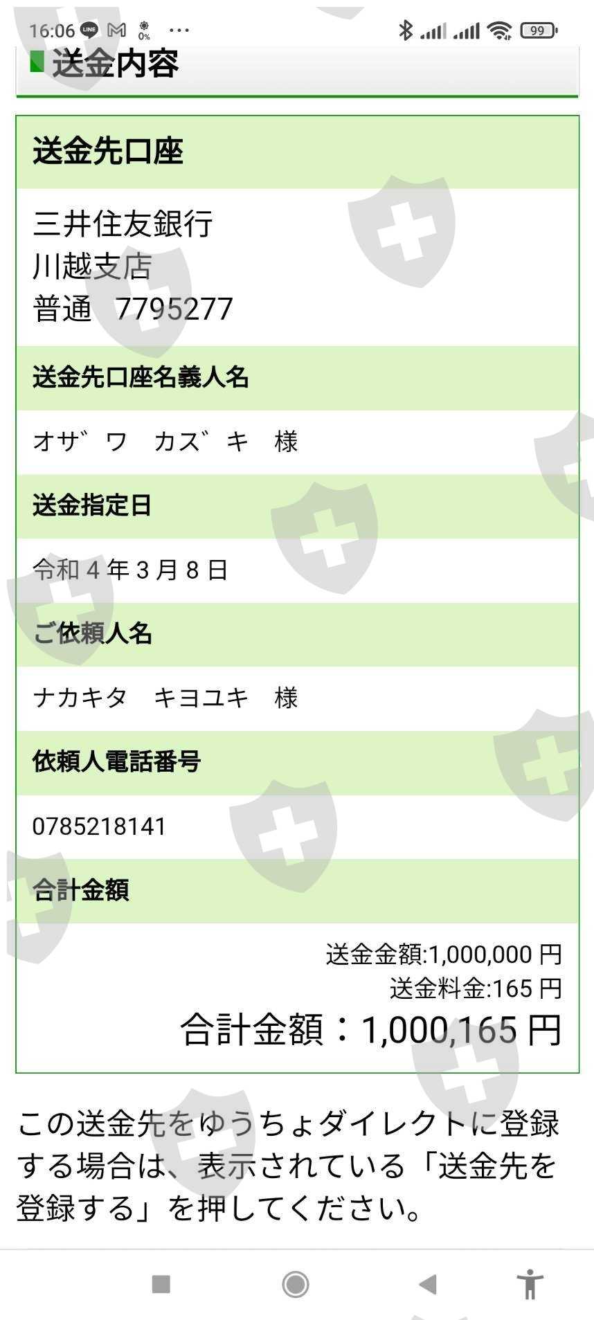 line] 与 alisa 的谈话历史 保存日期:2022/4/11 12:28 2022/2/27 (Sun) 12:13 kiyoyuki nakakita lina 介绍了我,日语可以吗? 12:14 alisa 各位顾客好。我是 Alisa,客户支持经理。 12:14 alisa 您想以您的名义开设一个真正的外汇交易账户吗? 12:15 kiyoyuki nakakita 是的 12:15 alisa 为了申请帐户,您需要提供以下信息。 12:15 alisa 1. 姓名 2. 手机号码 3. 电子邮件地址 4. 护照或身份证或驾驶执照照片 12:15 alisa 请以文本形式输入第 1 条至第 3 条中的信息。第4条12:18 kiyoyuki nakakita 1. Kiyoyuki Nakakita 2.09020148141 3. kiyoyuki32@gmail.com 4 发送前请告诉我公司名称。客户支持经理?没问是哪家公司,谢谢。 12:36 艾丽莎 Node Capital Group13:24 kiyoyuki nakakita [照片] 13:24 kiyoyuki nakakita [照片] 13:24 kiyoyuki nakakita 4. 我给你发了一张你的驾照照片。 15:07 alisa 请稍等 15:48 alisa 您的邮箱收到信息了吗?请对到达您的电子邮件地址的信息进行截图。 16:26 kiyoyuki nakakita [照片] 16:26 kiyoyuki nakakita [照片] 16:26 kiyoyuki nakakita [照片] 18:30 kiyoyuki nakakita 我不知道如何登录mt5。谢谢。 18:33 alisa [照片] 18:34 alisa 30100371 vaek699718: 35 alisa 这是您的帐户和密码。现在您可以要求您的朋友登录并告诉您交易流程。我希望您的外币交易将更有利可图。非常感谢你。 18:35 alisa 请注意密码中大小写字母的区别 18:44 kiyoyuki nakakita 登录字母数字 30100371 密码 vaek6997 输入此未验证。 18:52 kiyoyuki nakakita 与您的朋友联系。请稍等。 19:02 alisa [戳] 19:06 kiyoyuki nakakita [alisa] 取得证券公司的银行账户并直接汇款 19:09 alisa 银行名称:三井住友银行 分行名称:大宫分行(店铺编号)514)交易类型:普通银行号码:8519953 账户名称(假名):Nguyen Teikiyun Lien 19:09 alisa 如果在 30 分钟内完成汇款,请将汇款详情照片发送给我们。选择当天 20:30 存款 alisa 您的 50,000 日元已存入,请接受。 2022/2/28(星期一)我昨天存入了50,000日元,但是请申请提款如何注册提款帐户。 16:25 alisa 233204.31 美元 272311 11:06 alisa 请联系银行卡后尽快入金。 12:51 alisa 银行名称:三井住友银行 分行名称:川越支行(店铺编号 507) 交易类型:普通囗 ZA 号;7996178 账户名称(假名):Negishi Tact 账户名称:Takuto Negishi 12:51 alisa 立即存款 请完成并拍照。谢谢 2022/3/23(星期三) 支付分析师费可以取款吗?您还需要其他付款吗?还有一点就是分析师费会从2个账户里转过来,可以吗?