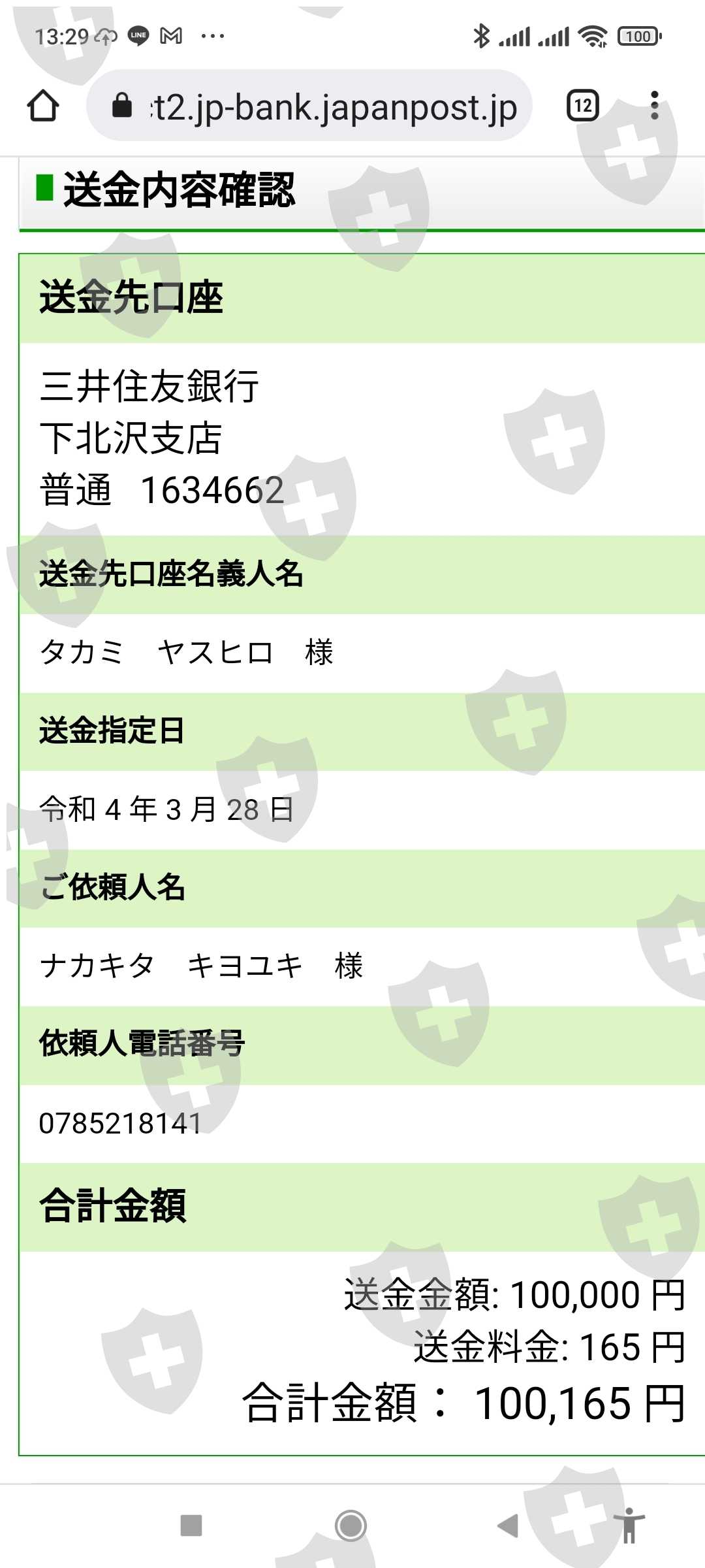 20:30 Alisa あなたの5万円が入金されましたので、ご査収ください。