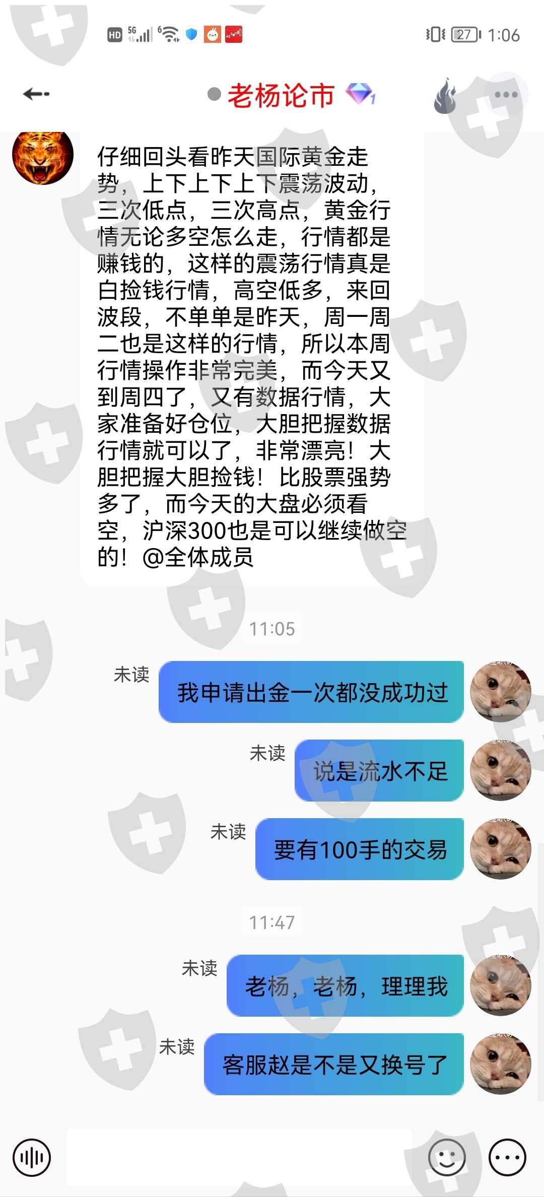 思语群加入的,拉我进去的人也失联。我本来赚了点就想出金,每次都以各种原因被拒绝。客服要我再充5000美金进去补流水才可以出金,感觉不对。在思语群里问了下立刻被踢。现在出不了金。这个骗子平台!