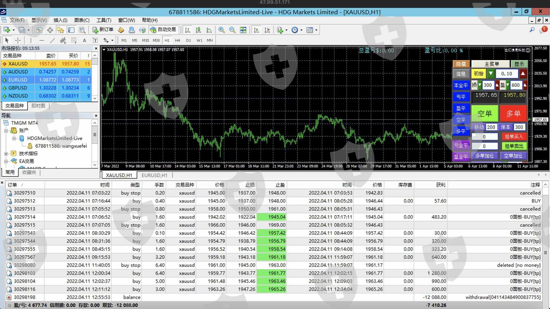 正常手工下单盈利不给出金。