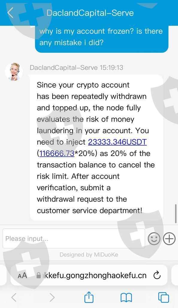 suddenly I can't withdraw my money after 1 week running. even though it's usually fine, the service customer said that I was indicated for money laundering which I didn't understand and I was asked to deposit 20% of my funds. Please take action against this company