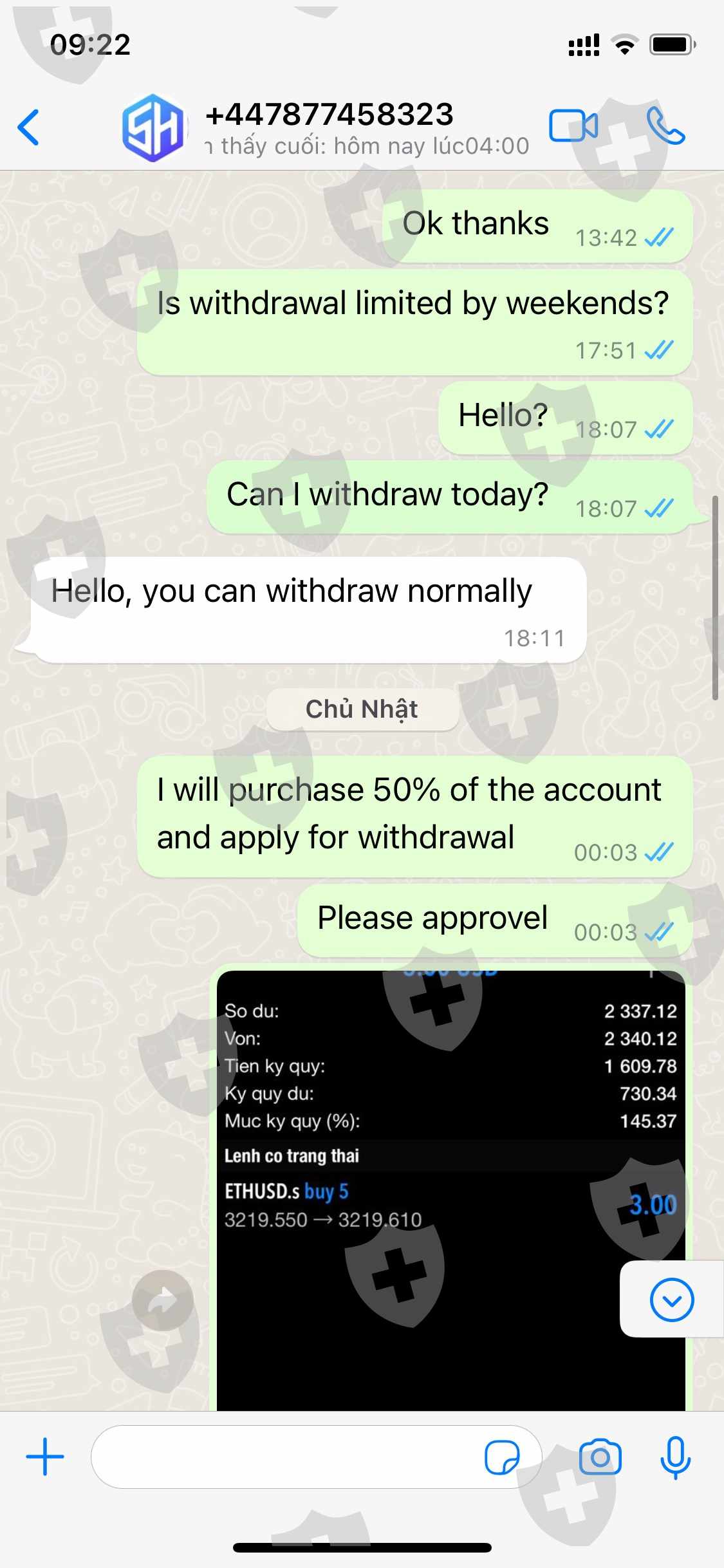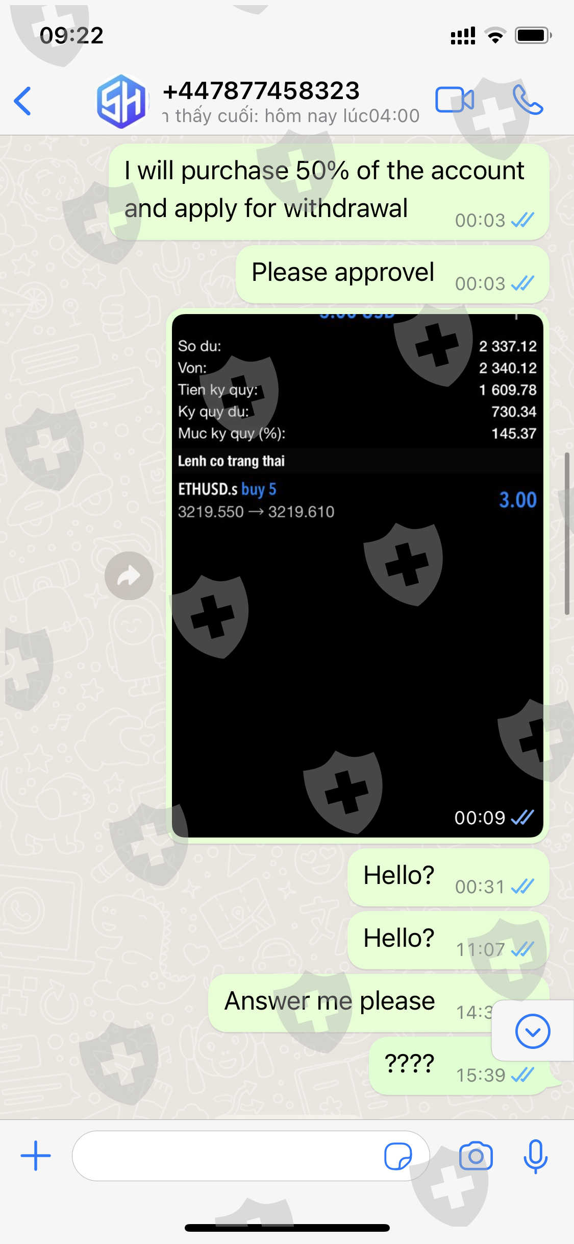 我通过币安渠道向交易所存入了 2000 多美元 SHENGHUI通过 mt5 应用程序进行外汇交易。交易完成后,我发现它有利可图,所以我退出了币安钱包。但侧面 SHENGHUI多次以我没有购买全部50%的资金为由拒绝让我退出。我按照指示重新进入 mt5 并用我的资金的 50% 以上进行交易,然后再提款 1 次,这次是交易所 SHENGHUI理由是我的交易被风险评估部门扣留,因为它似乎是洗钱行为。我觉得太荒谬了!当交易有利可图时,投资者提现到钱包,即被认定为洗钱,资金被锁定,不能交易或提现。我和客服谈了很多次,他们只回复说我的资金被监控了,要等他们自己判断是不是洗钱。到现在已经快一周了,但是 SHENGHUI仍然没有善意让我把钱提取到钱包里。我在下图中附上了我的交换和客户服务。最后一张图是我的交易记录