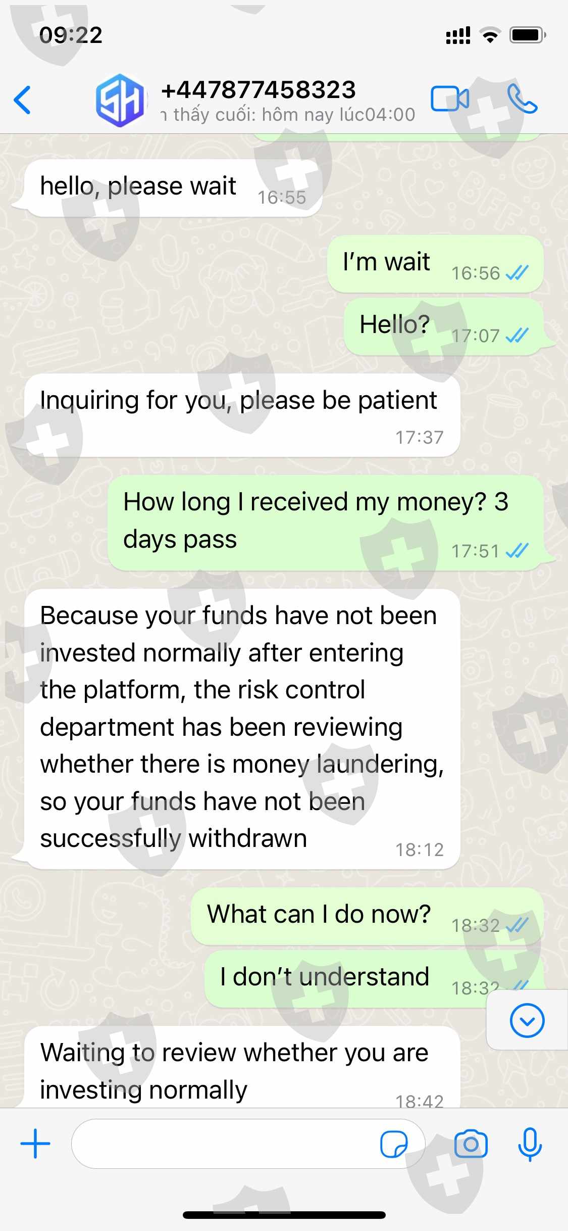 Tôi nạp hơn $2,000 thông qua kênh Binance vào sàn Shenghui để giao dịch ngoại hối qua ứng dụng MT5. sau khi giao dịch tôi thấy có lợi nhuận nên rút về ví Binance lại. nhưng phía Shenghui nhiều lần từ chối cho tôi rút với lý do tôi chưa mua hết 50% vốn. tôi đã làm theo hướng dẫn vào lại MT5 và giao dịch với mức trên 50% vốn và thực hiện lệnh rút 1 lần nữa, lần này sàn Shenghui lấy lý do giao dịch của tôi bị bộ phận giám định rủi ro giữ lại vì có vẻ nó là một hành động rửa tiền. tôi cảm thấy hết sức vô lý! khi giao dịch có lợi nhuận thì nhà đầu tư rút về ví thì bị đánh giá là rửa tiền và giam tiền lại không được giao dịch hoặc rút ra. tôi nhiều lần trao đổi với bộ phận chăm sóc khách hàng, tuy nhiên họ chỉ trả lời rằng vốn của tôi đang bị giám sát và phải đợi phán quyết tự họ xem có rửa tiền hay không. đến nay đã gần 1 tuần trôi qua nhưng bên phía Shenghui vẫn không có thiện chí cho tôi rút tiền của tôi về ví. tôi đính kèm trao đổi của tôi và bộ phận chăm sóc khách hàng theo hình bên dưới. hình cuối là lịch sử giao dịch của tôi