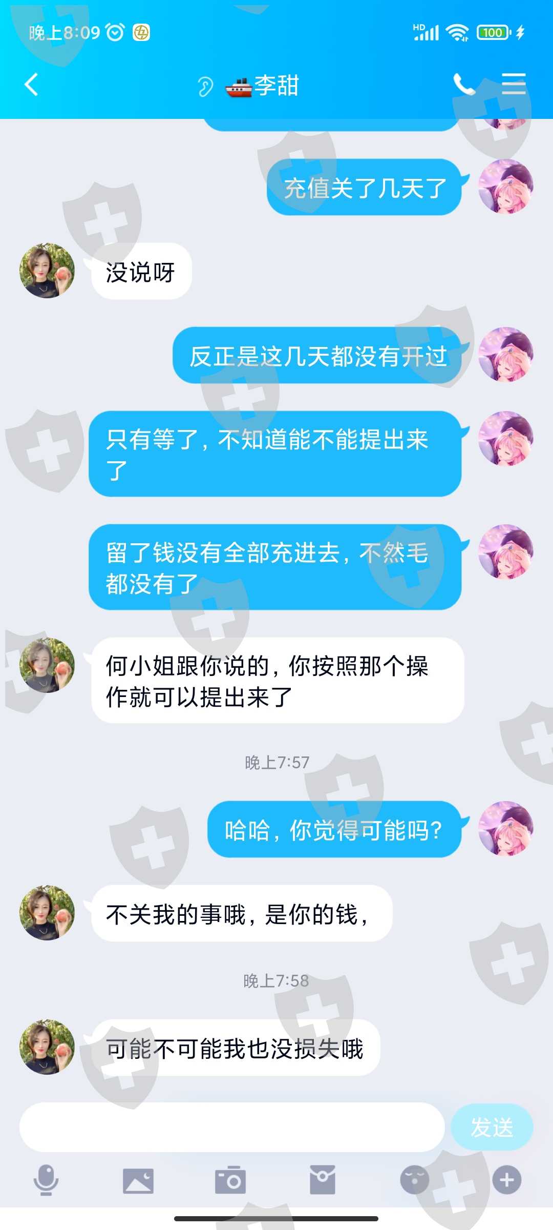 你们是不是通过一个叫甜的女孩子,带着去跟老刘炒股,然后又去做黄金的,如果是那就报警,估计是一伙的,林顿简讯的那个甜的很正经的女孩有一个电话号码,那个号码的主人认识甜的很正经