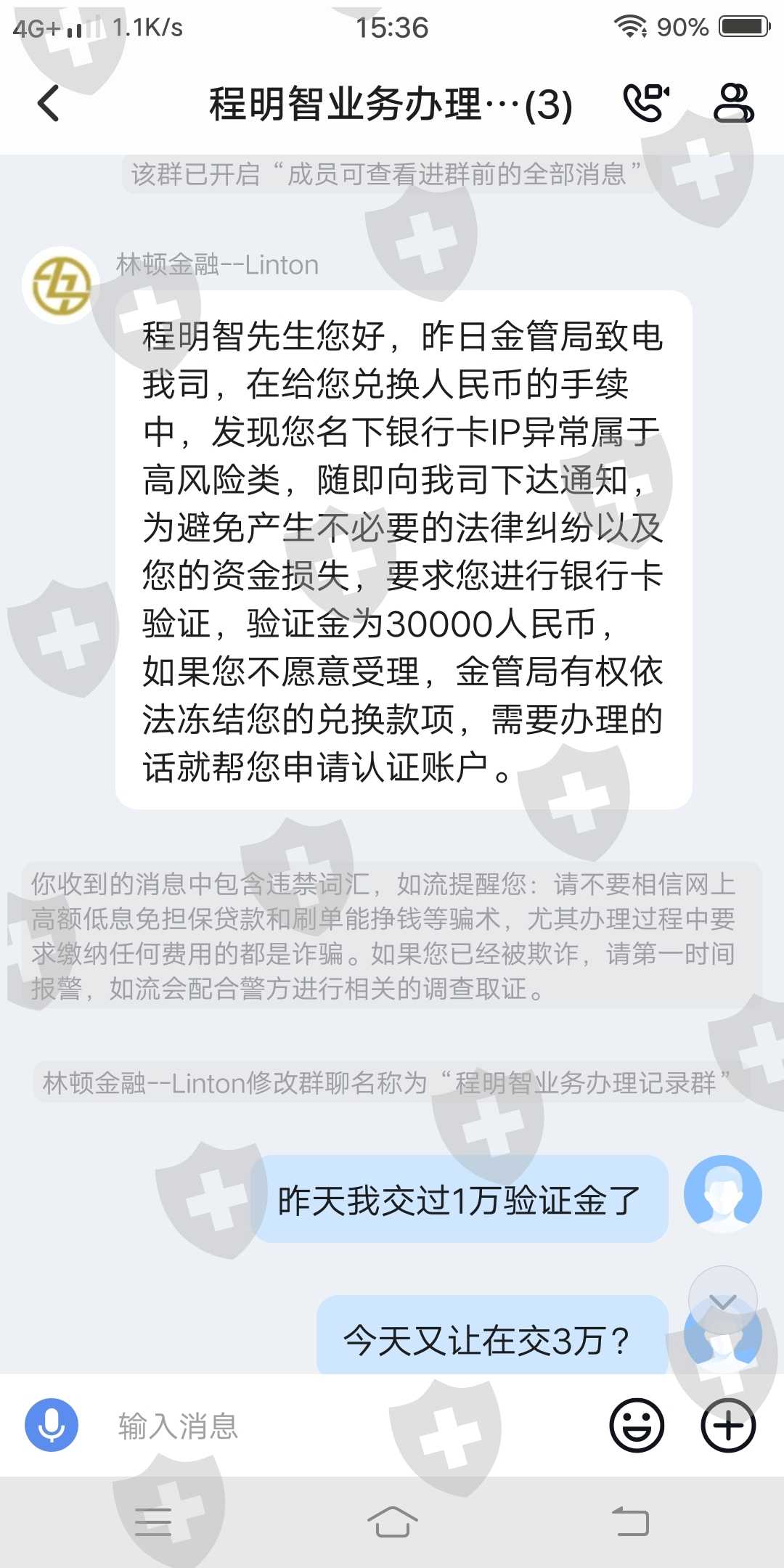 出金说让缴纳个人所得税(人民币12400元)缴纳过了,随后又说我账号多次换美金(3次一共入金了人民币15000元),说内地警方涉嫌我账户洗黑钱需要缴纳(人民币10000元)解除嫌疑,我缴纳过了,随后又说金管局发现我名下银行卡lP异常属于高风险类,需要缴纳验证金(人民币30000元)验证金没缴纳