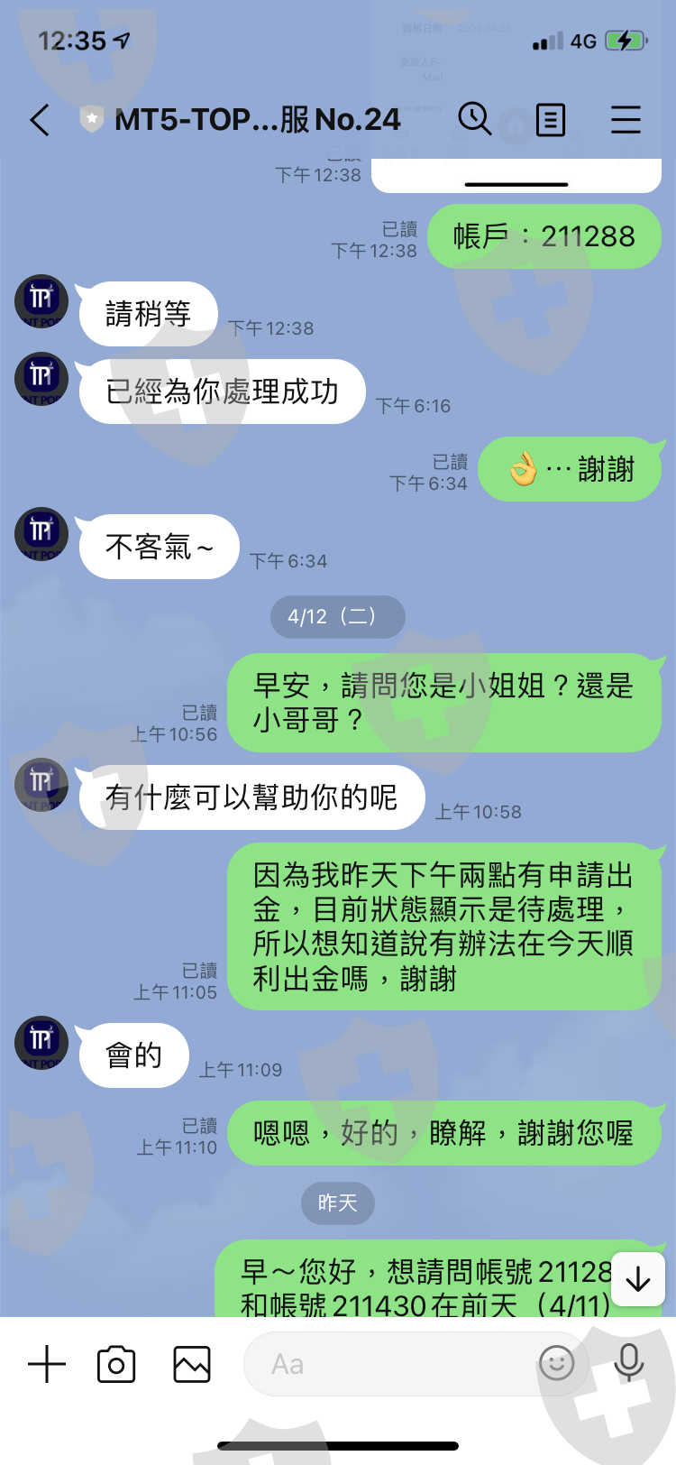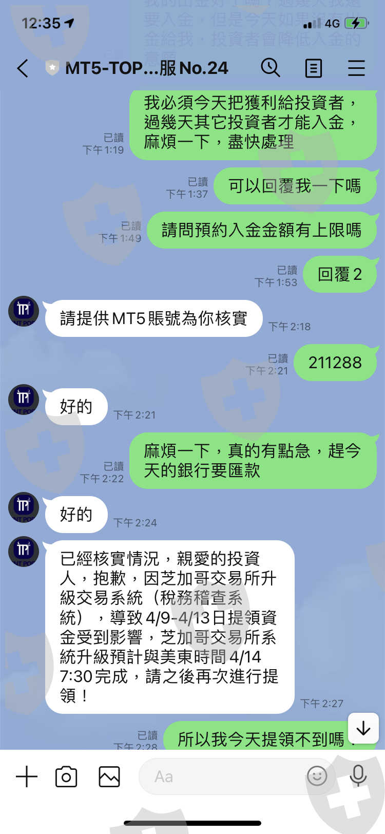 4/11申請出金,4/13沒有出金,詢問客服後才被通知系統維護,4/15後才能申請,客服處理消極,原接頭業務不回覆