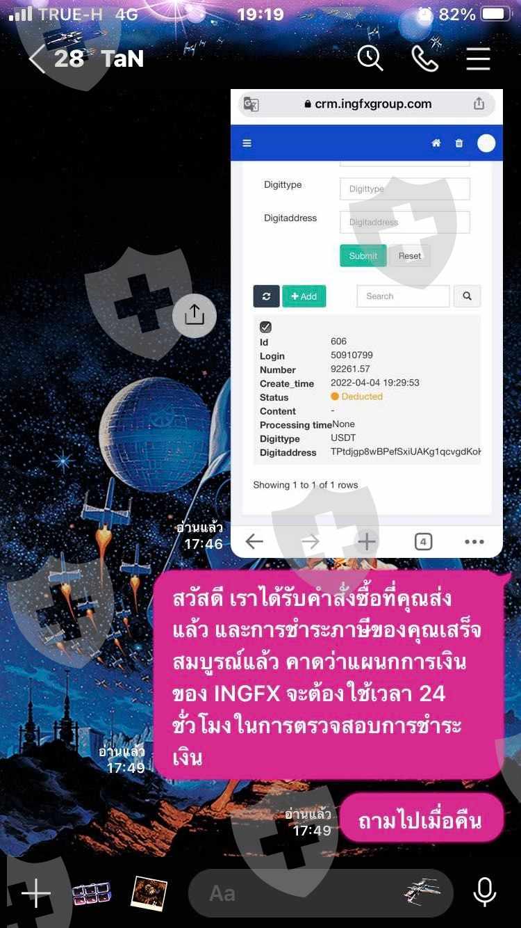 方式 INGFX 通知已缴纳税款,以便缴纳税款。全额转入USDT已联系但未管理建议逃脱了。