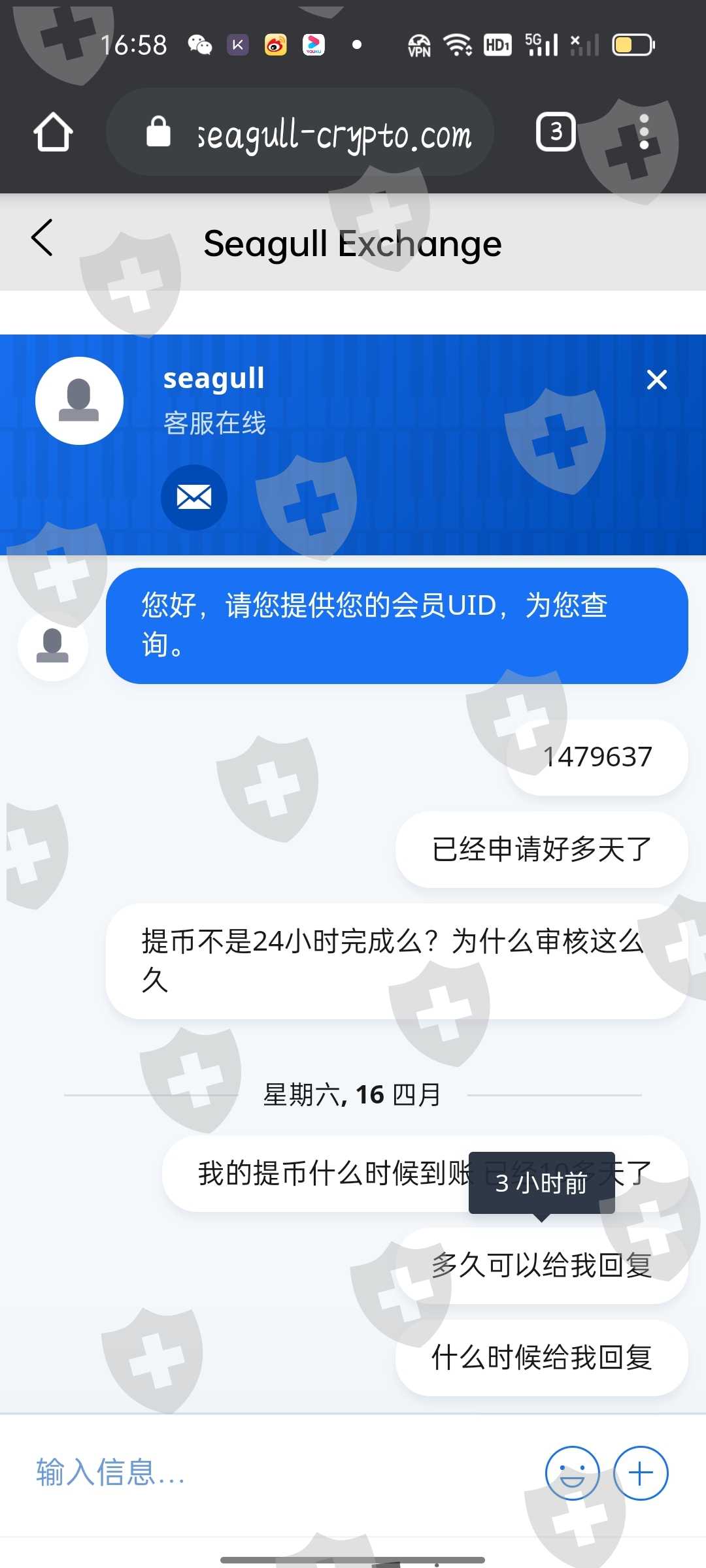 seagull crypto,一个做短线交割的平台,前期充值后少量币可提,现在完全不能提币.多数会在电报群里去拉人,盈利可观但是无法提币。