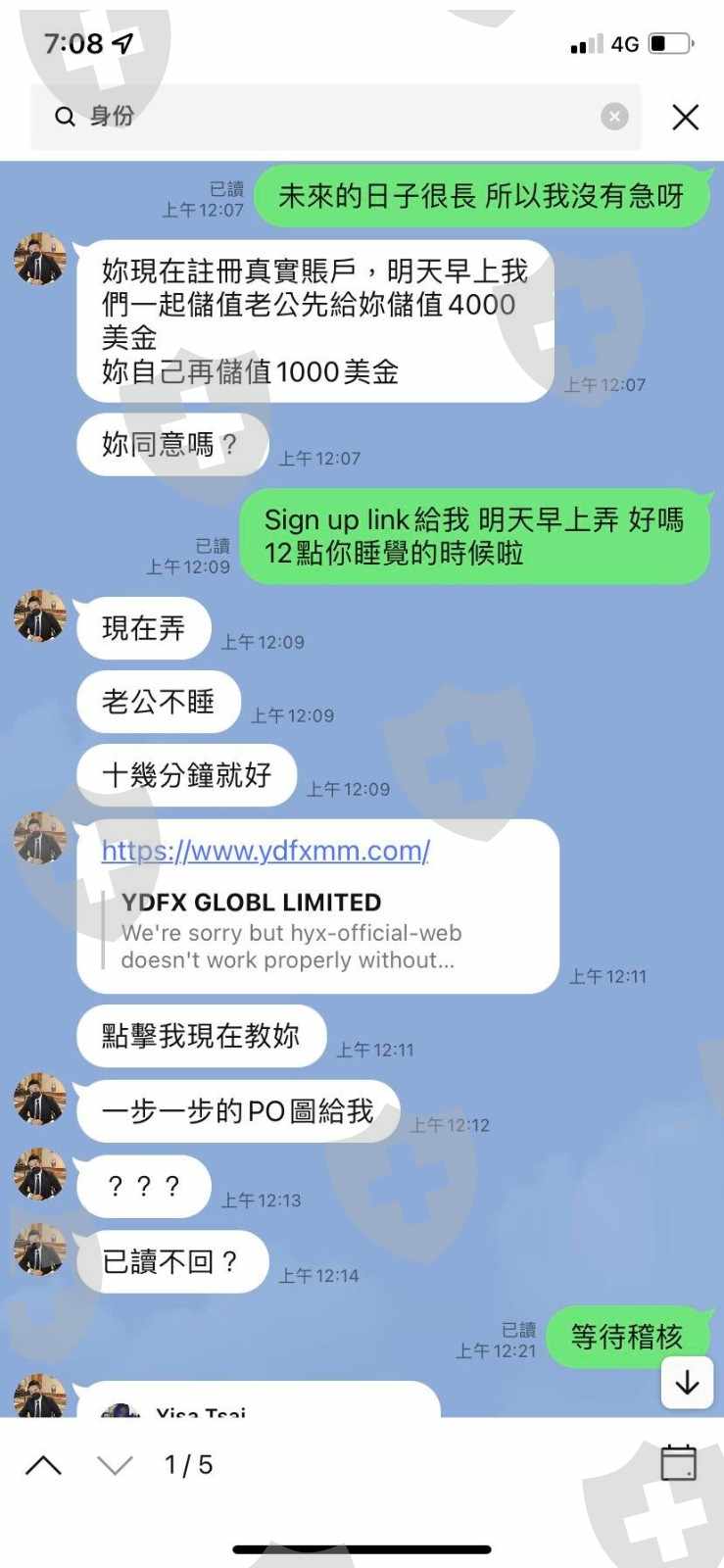 FB真的是詐騙集團的聚集地,好友裡面有一位認識3-4年的男生在他的介紹去YDFX開戶投資,誰知道認識這麼久的人會騙人,對方還給身分證讓人安心,被你們提醒發現一切都是假的,質問對方卻都不承認,最後帳戶裡的錢都領不出來儲值4000美金已經是全部積蓄了希望能取回
