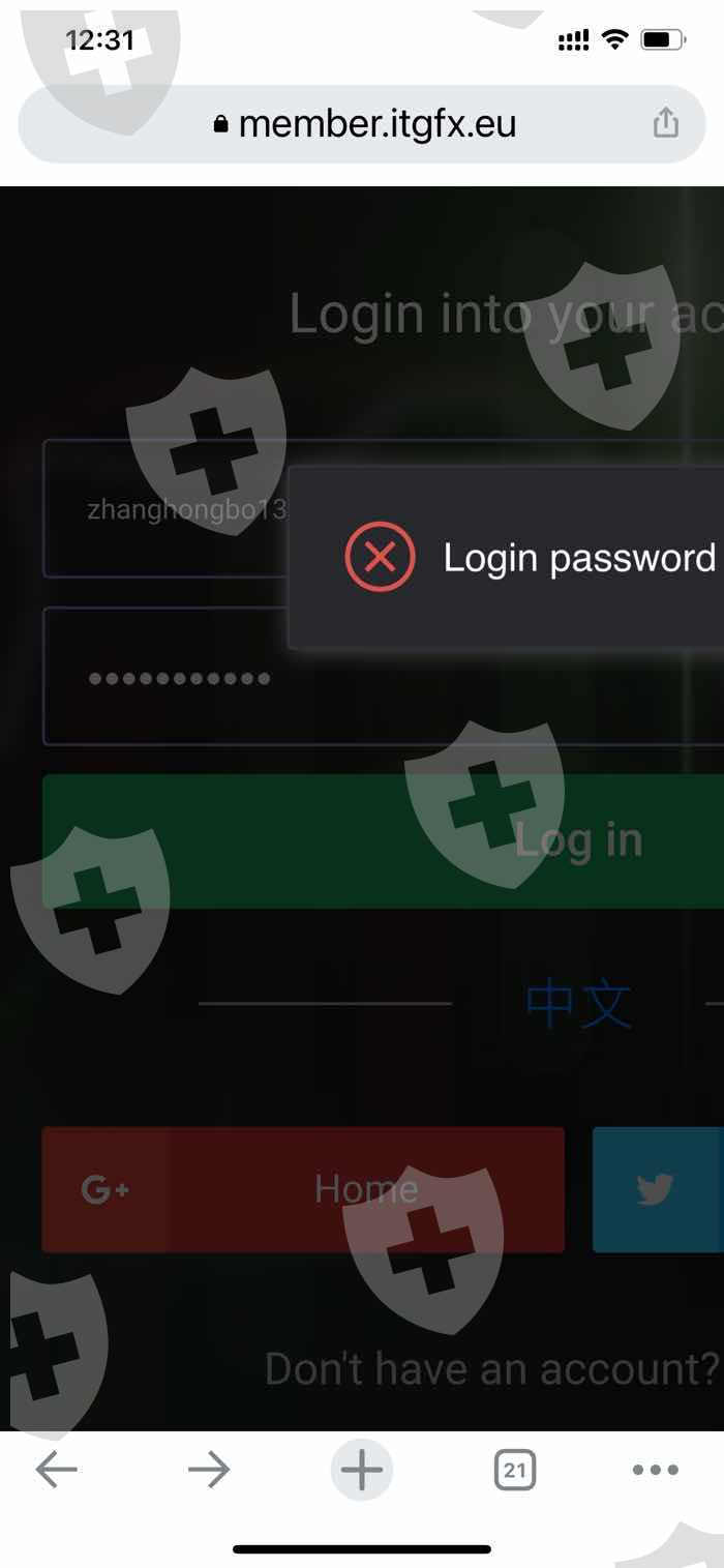 ITGFX外汇自4月18日开始不能登录后台程序,mt5也不能打开,显示为0,该平台自3月中上旬开始不能正常出金,现怀疑已经跑路