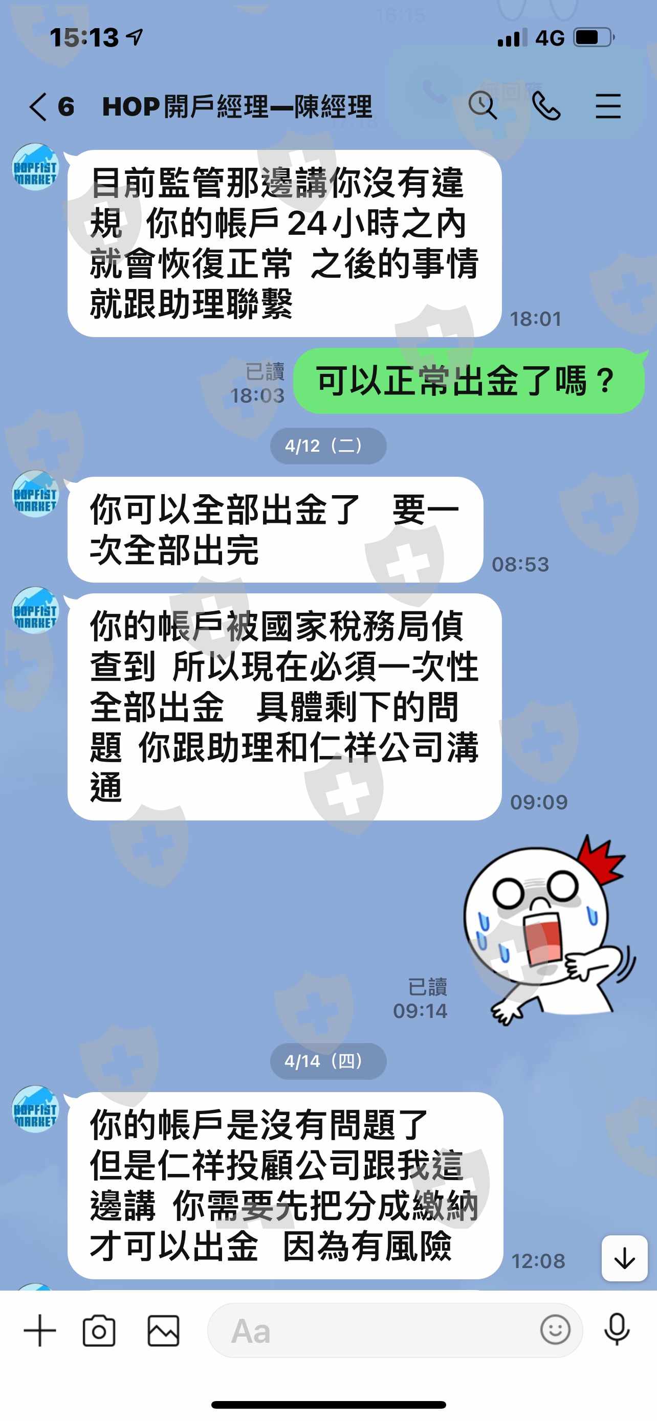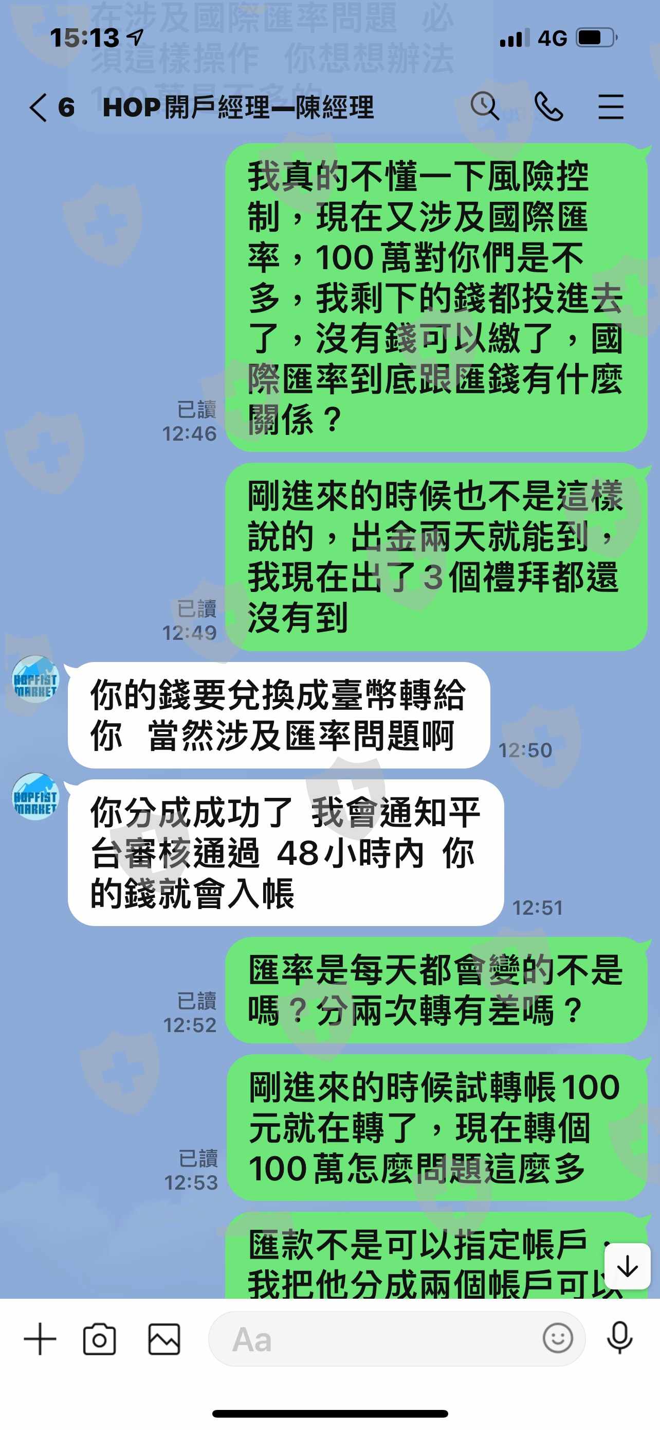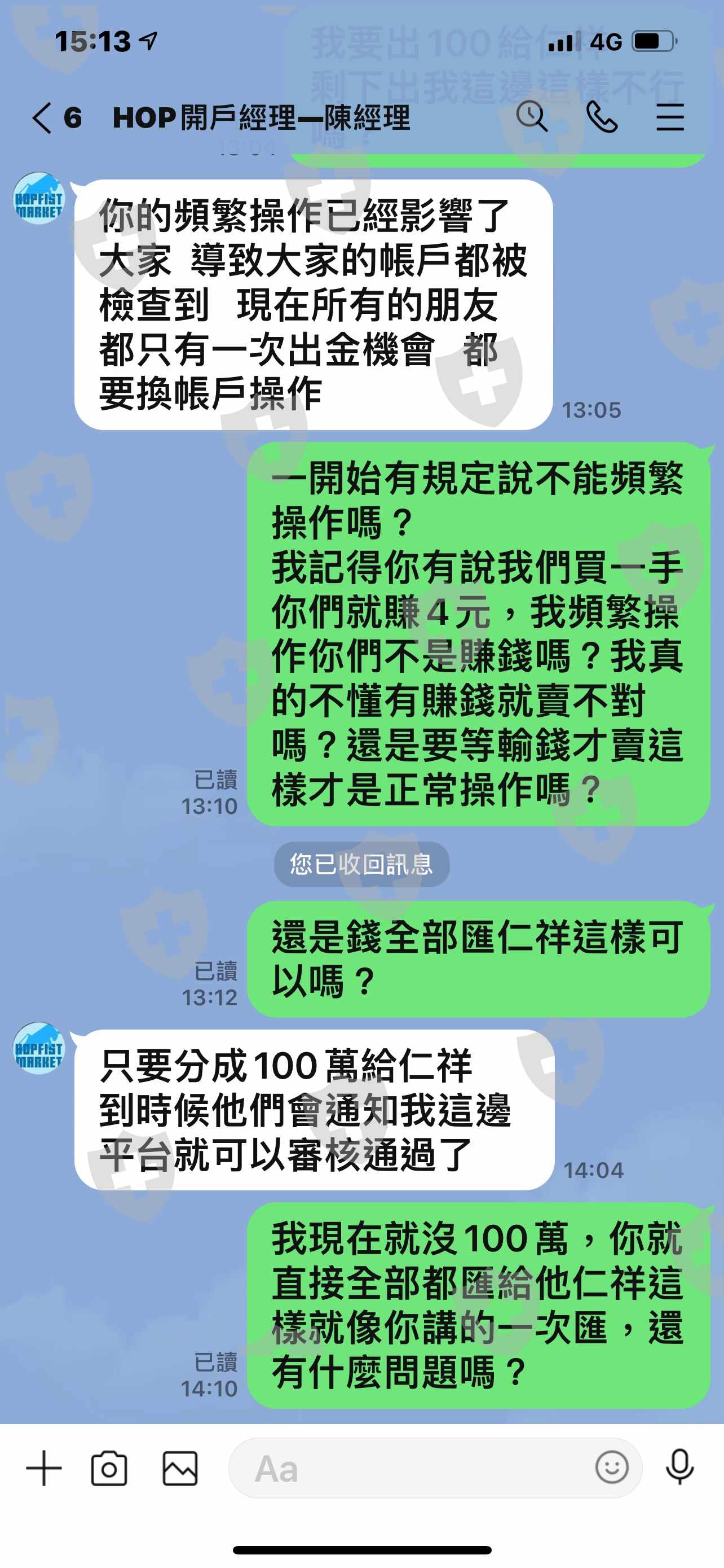 我3個禮拜前要出金,說我使用非法軟件不讓我出金,經過調查說我沒有使用,說可以出金了,經過兩天也是沒變法出金,說我要先繳100萬元給仁祥投顧分成才能出金,這樣合理嗎?