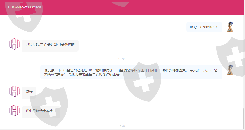 本人4月11日在平台注册,因本人使用EA策略,会用到短线交易,在看到官网介绍只有ECN帐户可以做的情况下入金交易,后续入金共计1600美金,本身基于对平台较新,监管较弱,因为评分不错,想着既然有盈利600美金左右,就申请看下平台出入金速度怎么样,平台客服反馈1到2天到帐,等到第二天看后台一直是处理中,就问客服突然告知,我违规交易,只能出本金,你以为这就完了吗,离谱的是还在无通知的情况下直接封停帐户,试问什么时候这行业平台商可以无故无通知的情况下直接封停帐户,简直离谱,流氓强盗比喻都是抬高他们了。