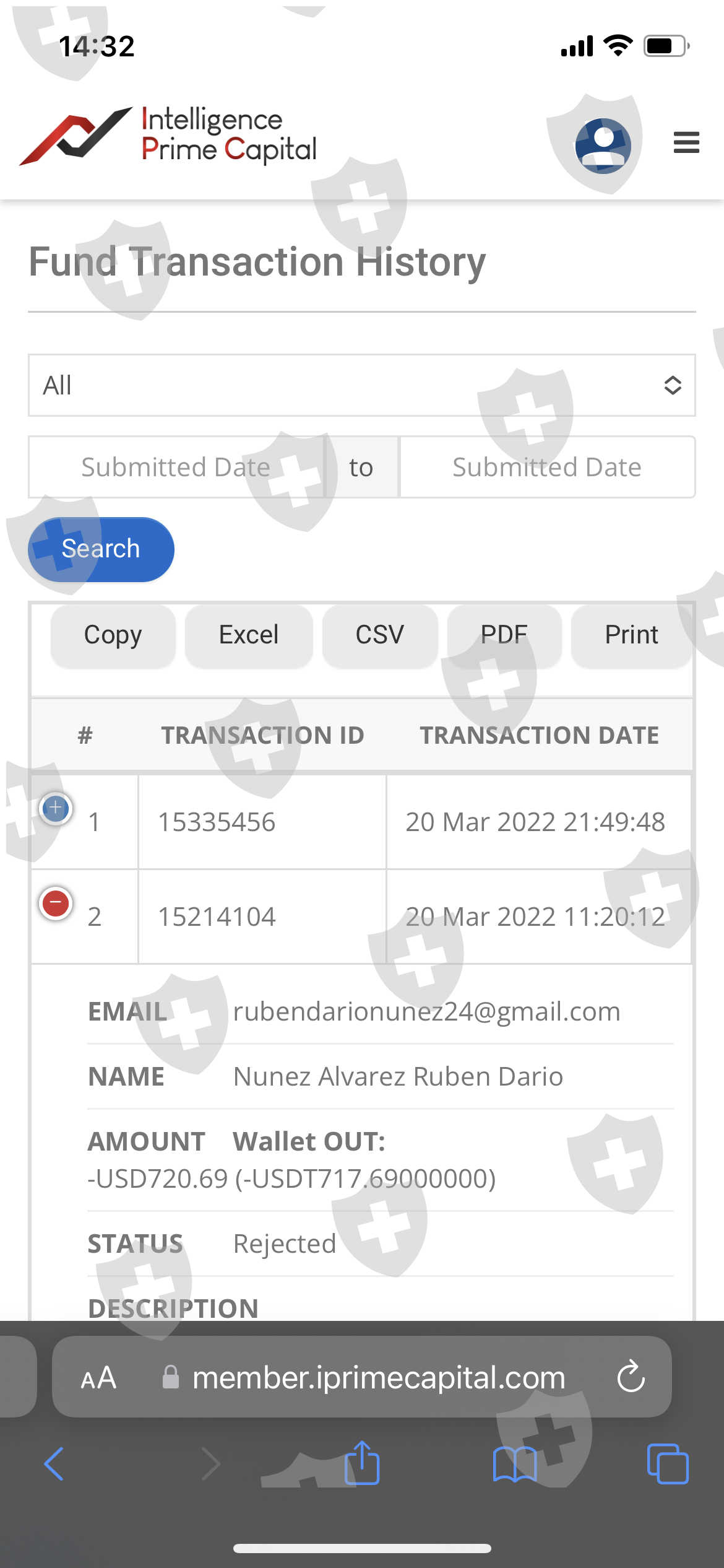 自 3 月 20 日以来,我们在尝试提款时一直无法提款,在我的案例中,它给了我们一条被拒绝的消息,金额为 720 美元,同样它不允许我们提取正在运作的资金,他们表示,他们被冻结了 100 天,并且自上述日期起继续与我们的银行开展业务,但未将业务利润分配给我们,并且他们没有提供这方面的任何信息。我们需要能够退出。同理,我们个人钱包里的钱被拿走了,余额为0。