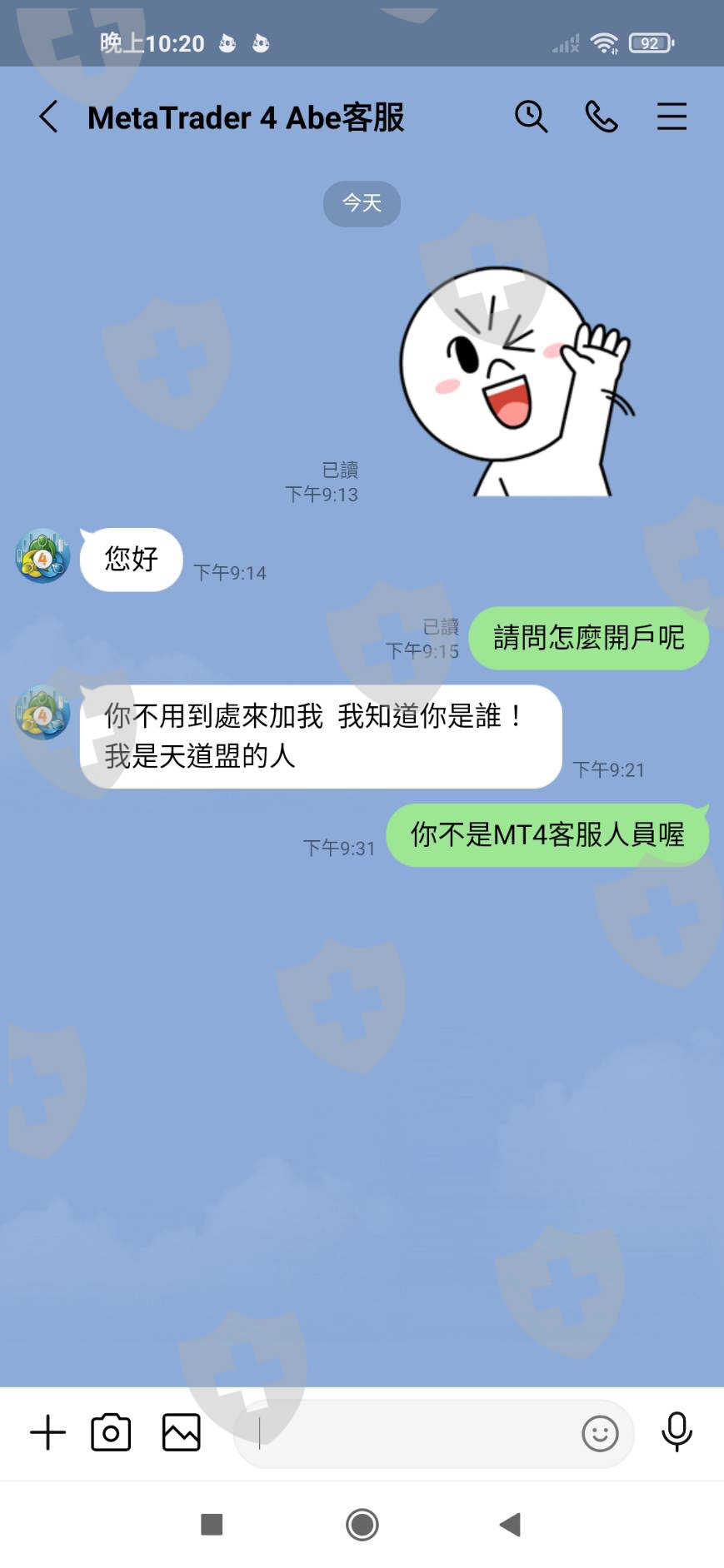 造假MT4服務人員身份,引導入金後避而不見,並且盜用客戶帳戶,以致帳戶凍結,無法出金