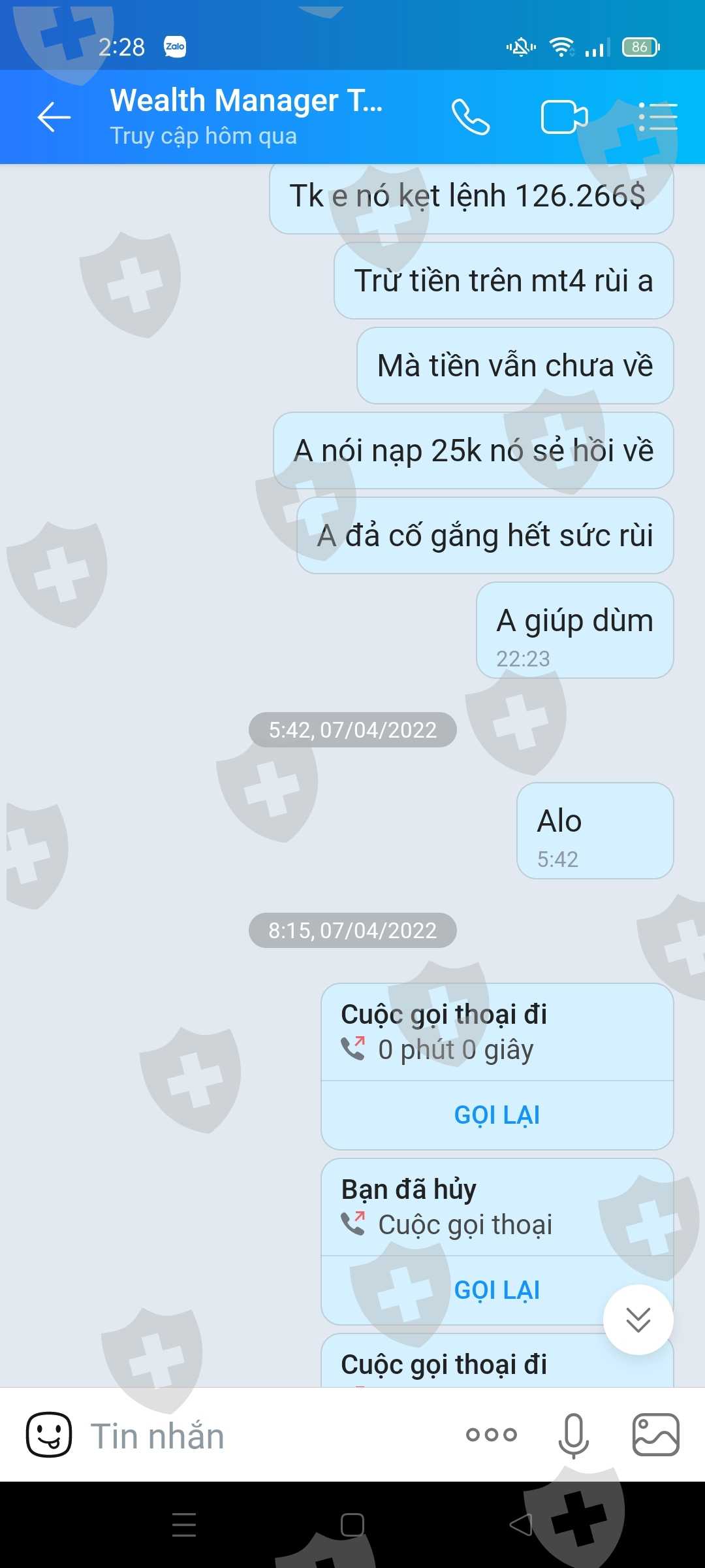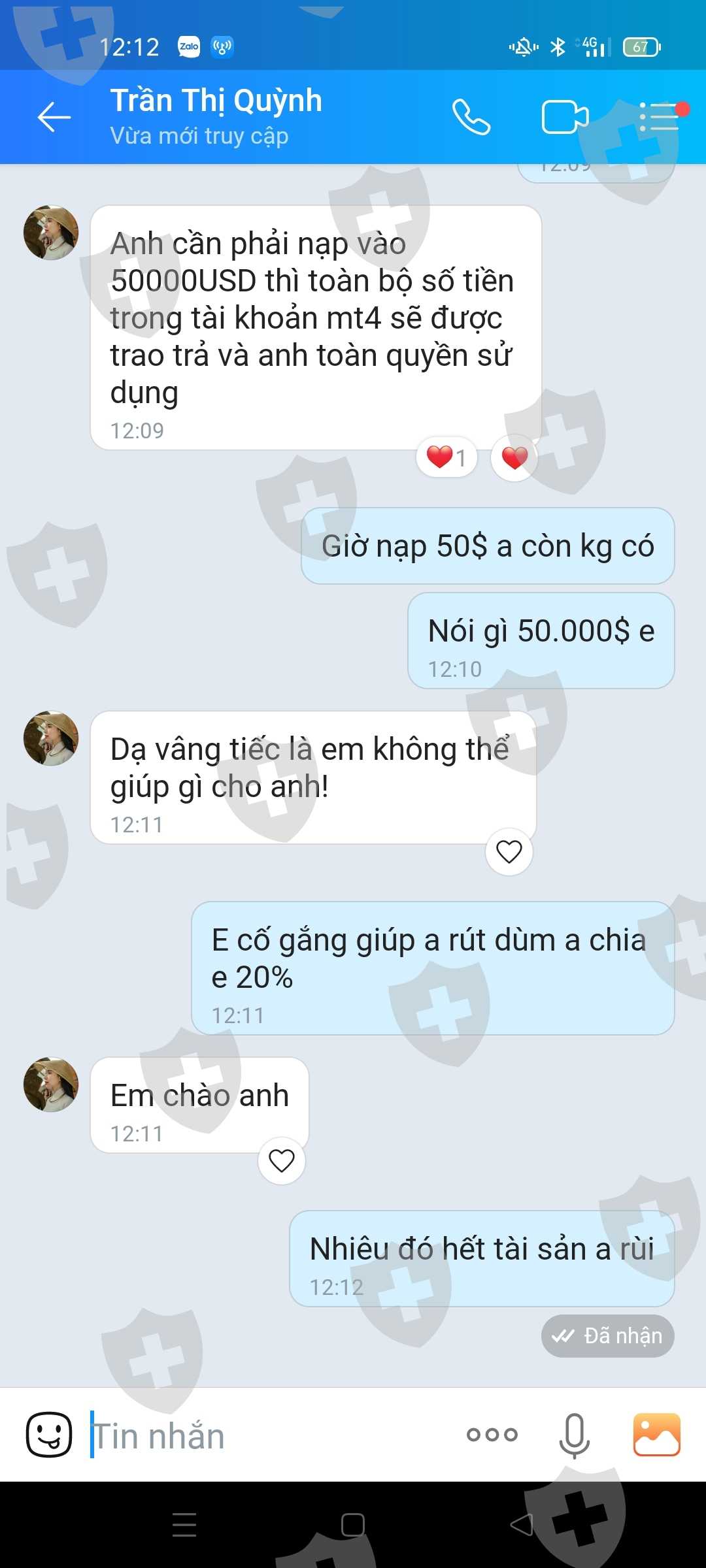co ngươi cua san loi keo minh vao giao dịch.yeu cau minh nap 50% vao tk truoc.bon no cho minh muon 50% nap vao tk minh.khi minh giao dich co loi nhuan kg cho rut.ma yeu cau nạp tien them vao tk.de xac minh tai khoan chính chủ là 25k.sau do vẫn kg cho rut mà yeu cau tiep tuc nạp tien vao tk them 50k.moi rut được tiền.minh thay đây là sàn lừa đảo. mong mọi người tránh xa sàn này !