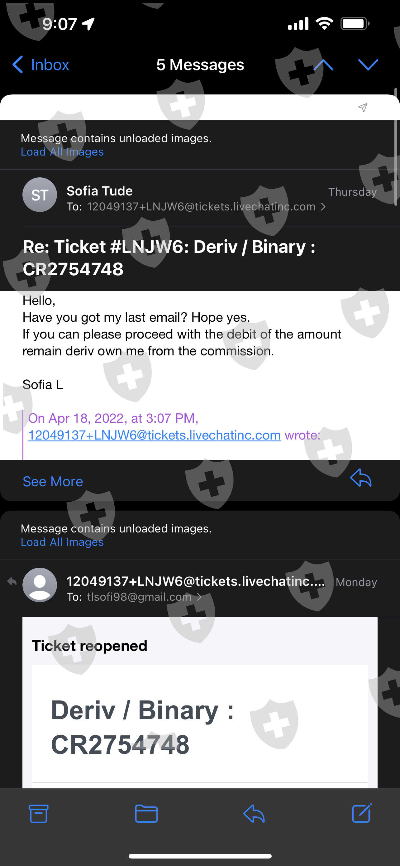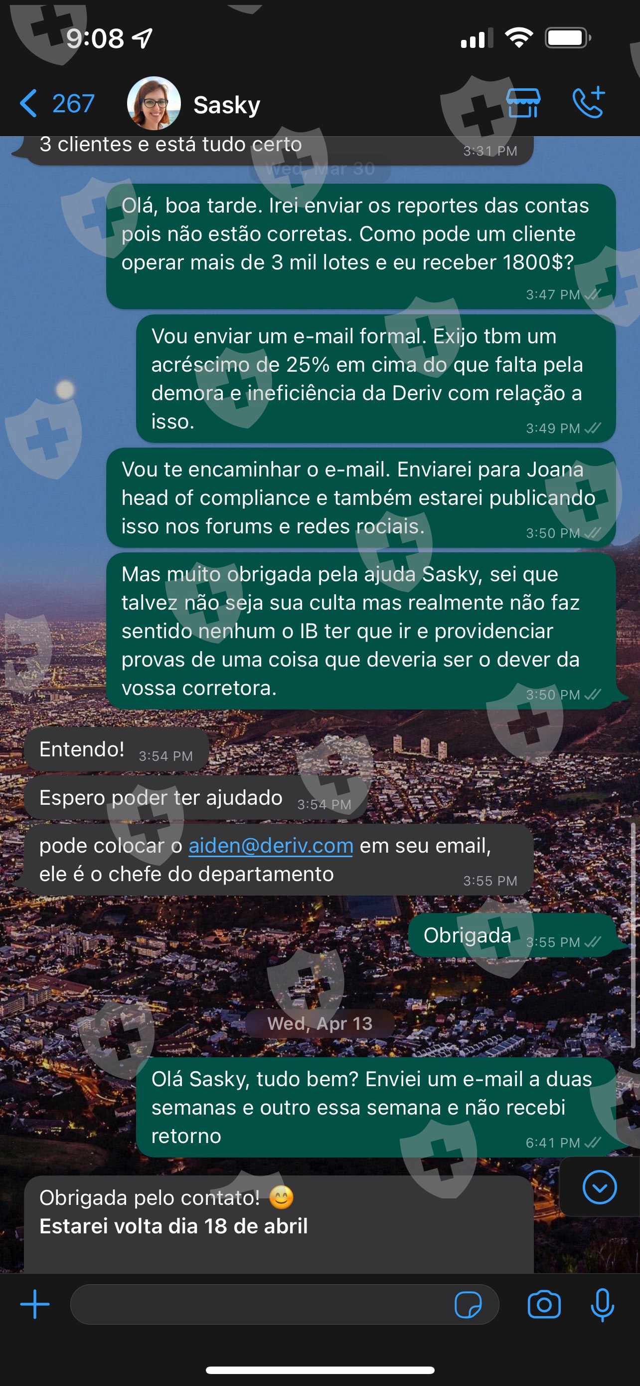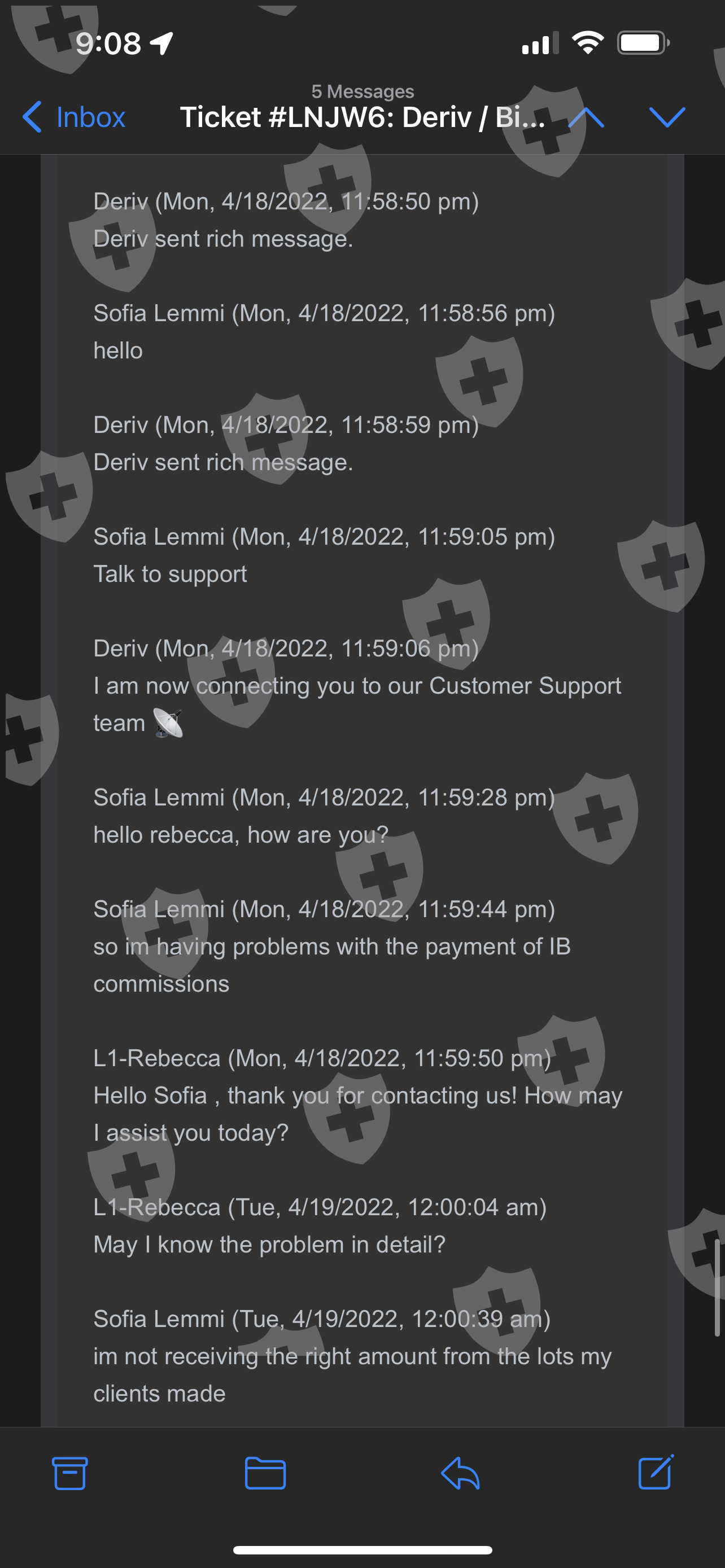Basically they ignored me multiple times as after a week I contact them they live chat, and again and again I still have NO REPLY BACK. This is insane. You bring clients, you have to be uploading multiple times your documents on Deriv system because all the time they disable your withdrawal. They are just inefficient and unprofessional. Never reply and have bad live chat agents available when you need help.