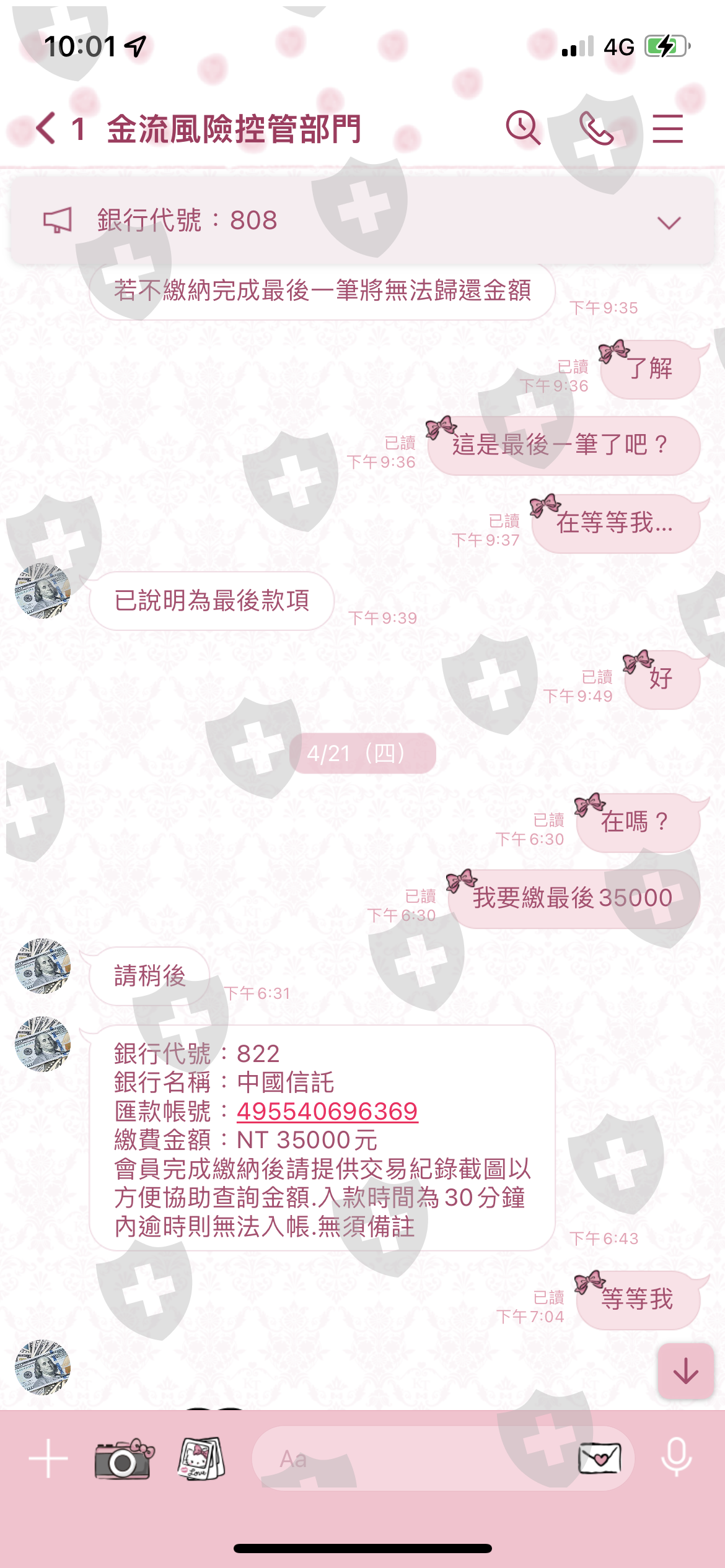 ㄧ直叫我繳到最後 …ㄧ筆了金流部門還給我已讀不回!繳出去的那麼多錢 卻無法出金…是在耍我的嗎?繳了很多錢….現在該怎麼辦? 連那位專員竟也給我已讀不回….報警處理有用嗎?查詢的到匯款帳號嗎?