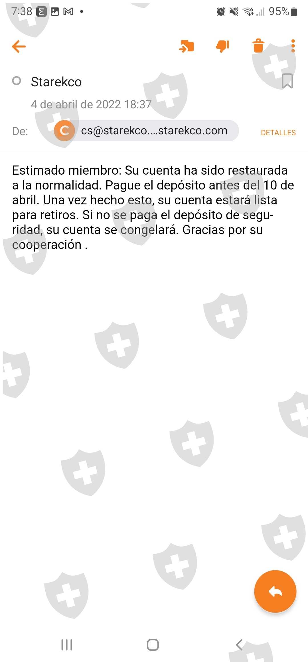 正如我在之前的电子邮件中已经解释的那样,我有到 crypto.com 的银行转帐收据,我的钱从那里转到 mkndy 钱包地址, Starek公司从这些欺诈性经纪人那里取钱是不可能的。我会附上更多的截图来证明它的合理性。以及证明这种欺诈行为所需的一切。