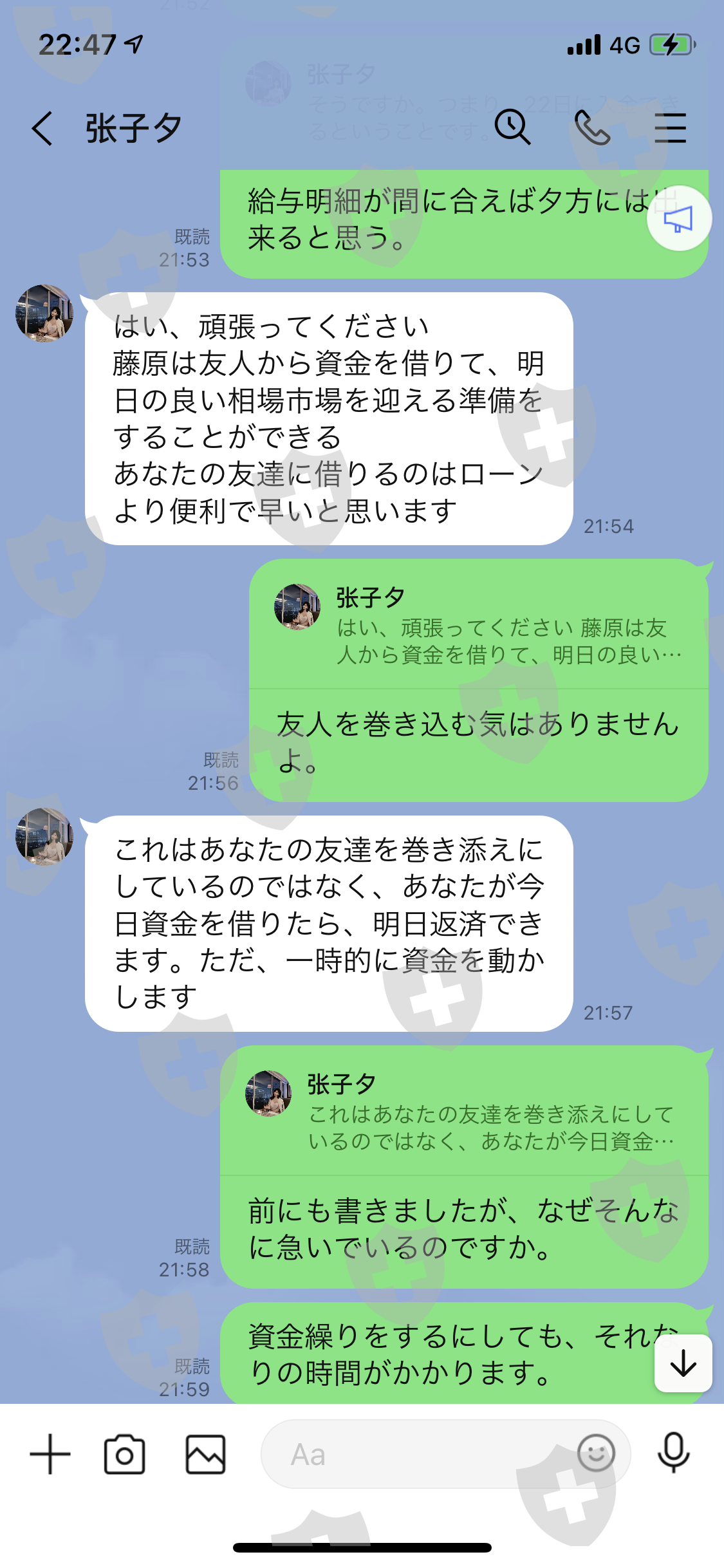 すると今度はLINE PHONEから無言電話を連発するなど質の悪い嫌がらせを行っています。その後勝手に結婚までのシナリオを作ってきたり、投資会社の変更を仄めかした後、4月7日を最後に連絡が無くなりました。※投資会社の変更については応じておりませんこの間約1ヶ月間、典型的な詐欺師の手口です。